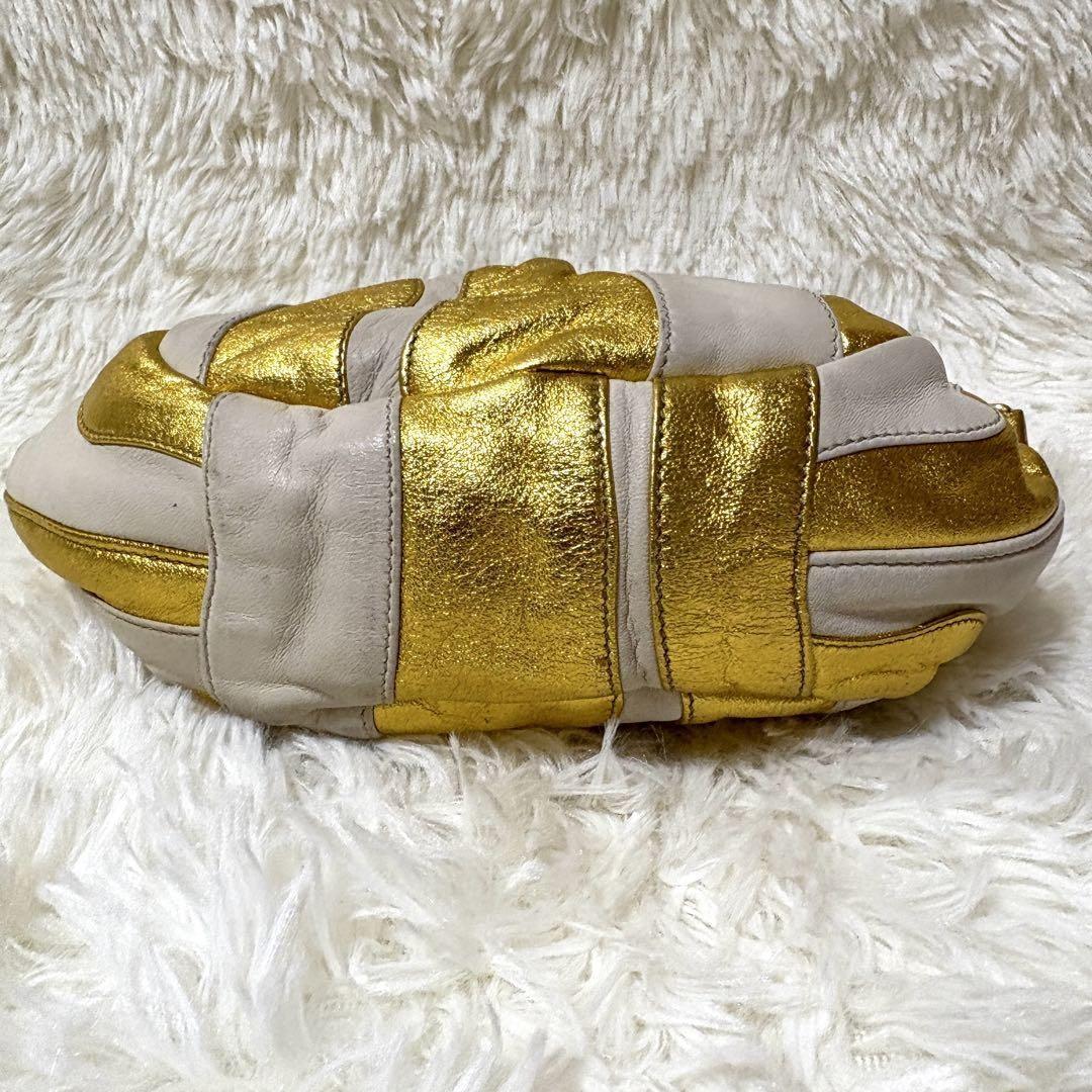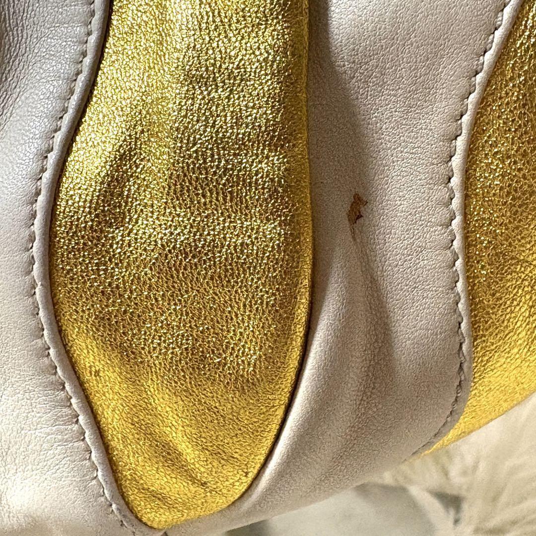 PRADA Hand Bag Tote Purse Leather Gold White Authentic