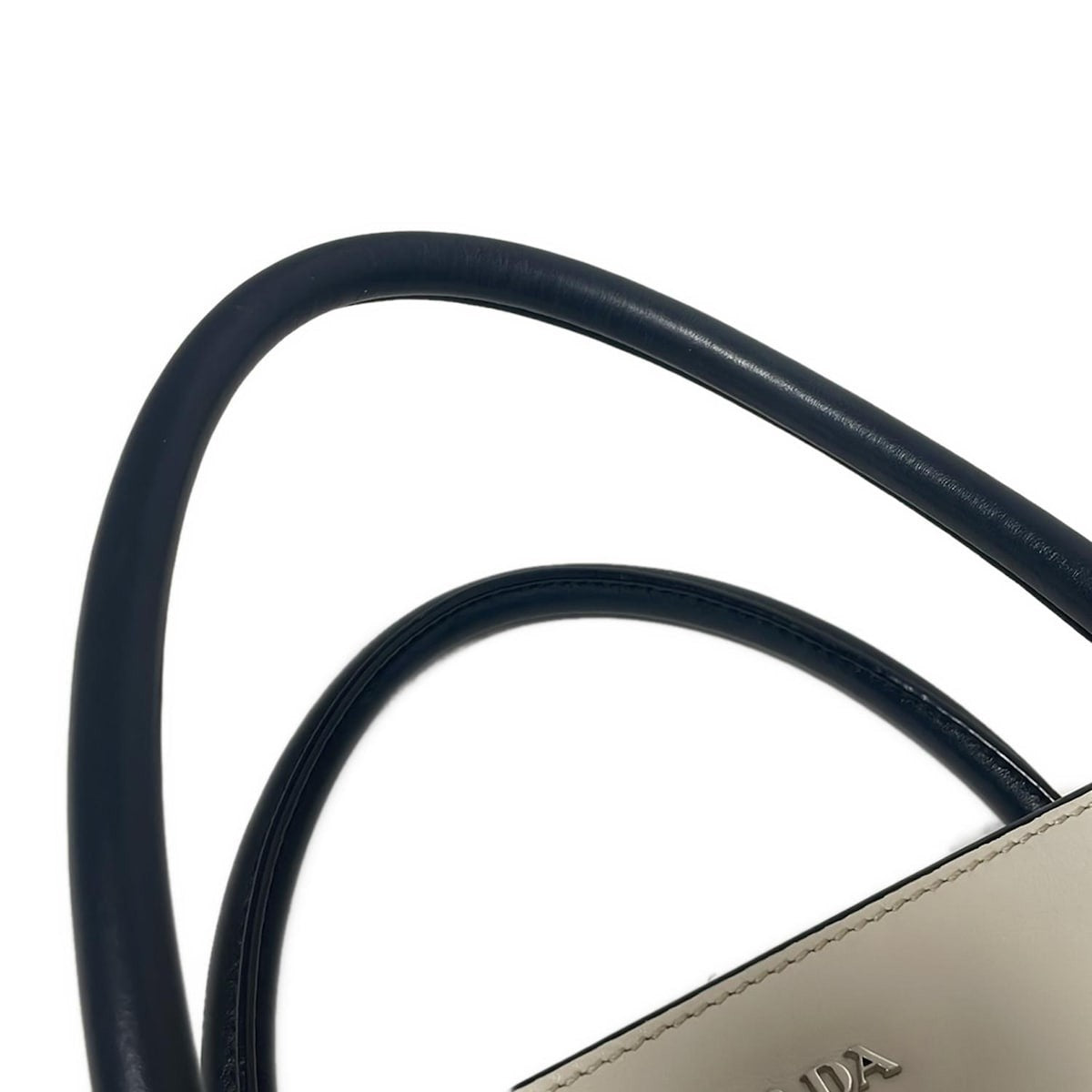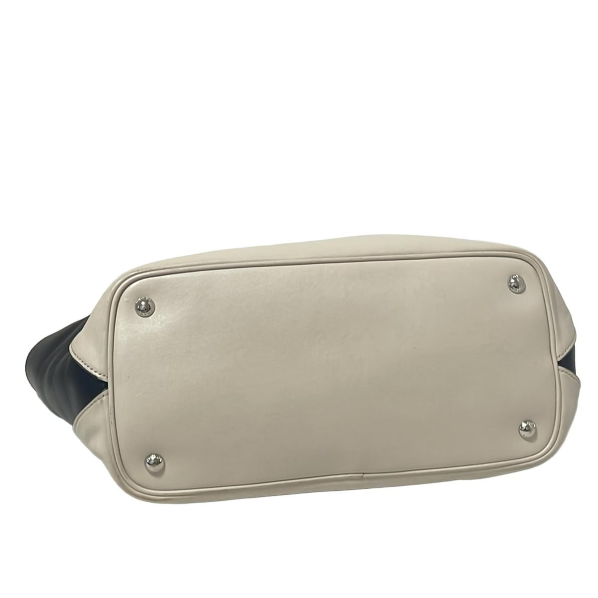 PRADA Hand Bag Tote Purse Leather Off White Black Authentic