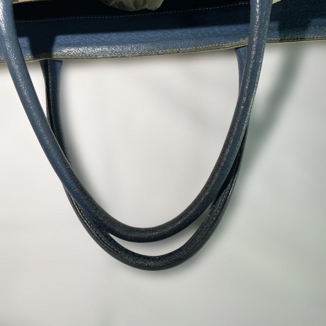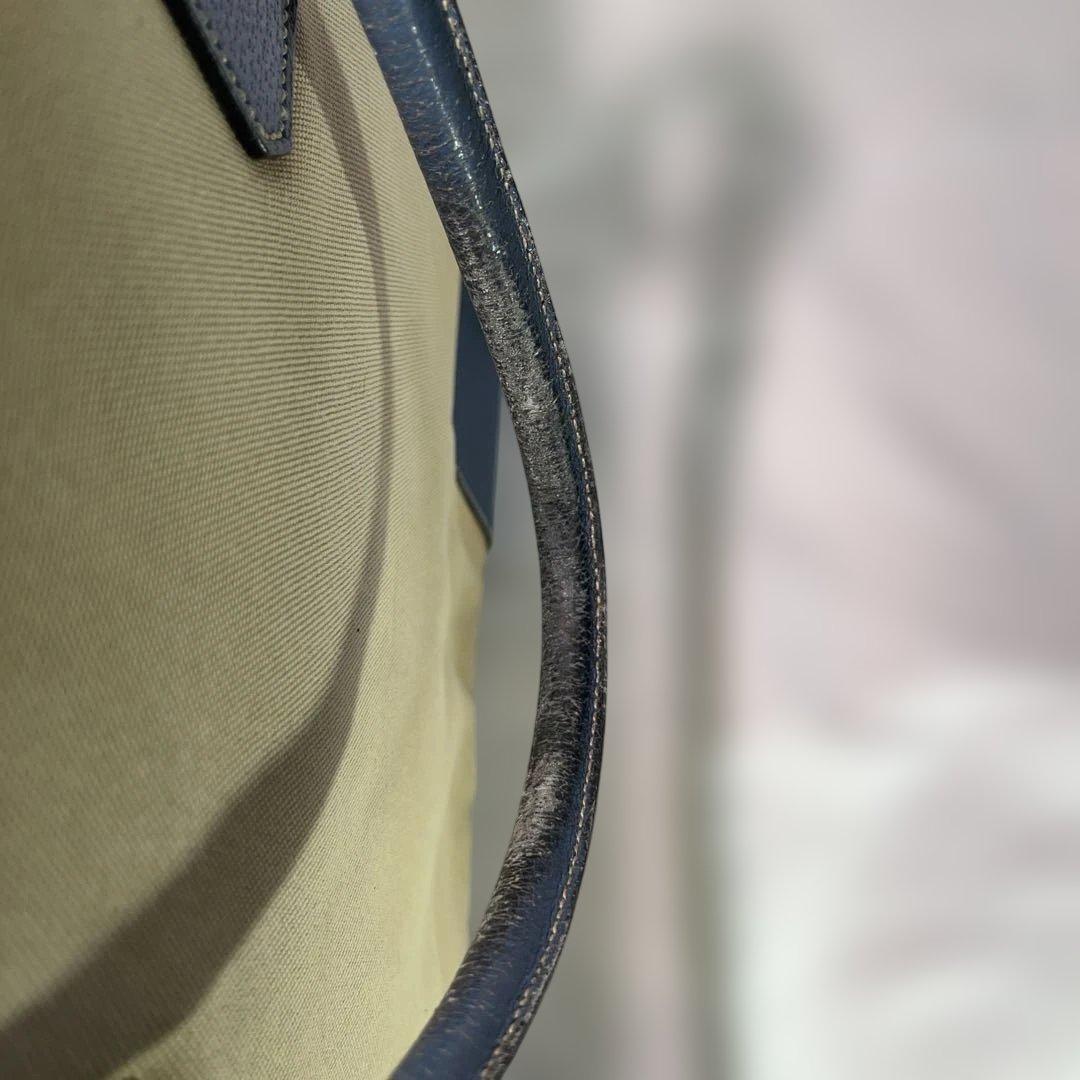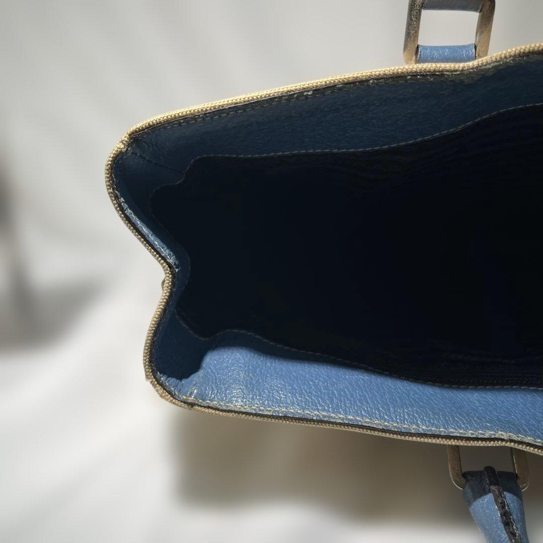 PRADA Hand Bag Tote Purse Logo Beige Blue Authentic