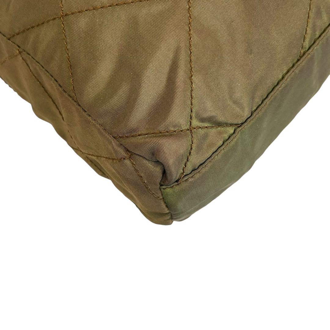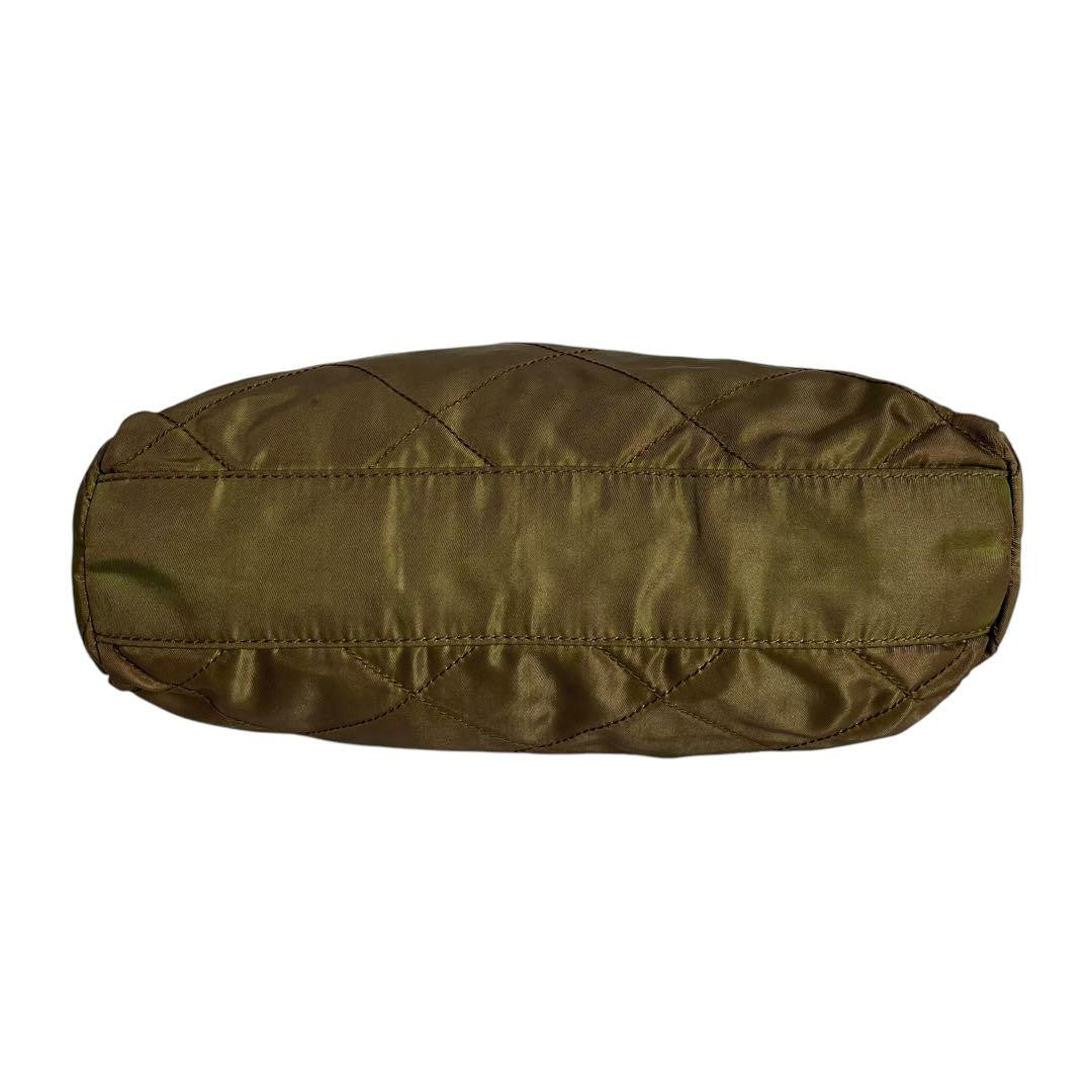 PRADA Hand Bag Tote Purse Logo Chain Nylon Khaki Authentic