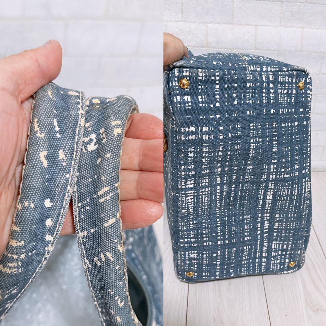 PRADA Hand Bag Tote Purse Logo Denim Authentic