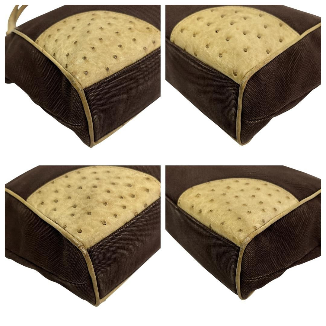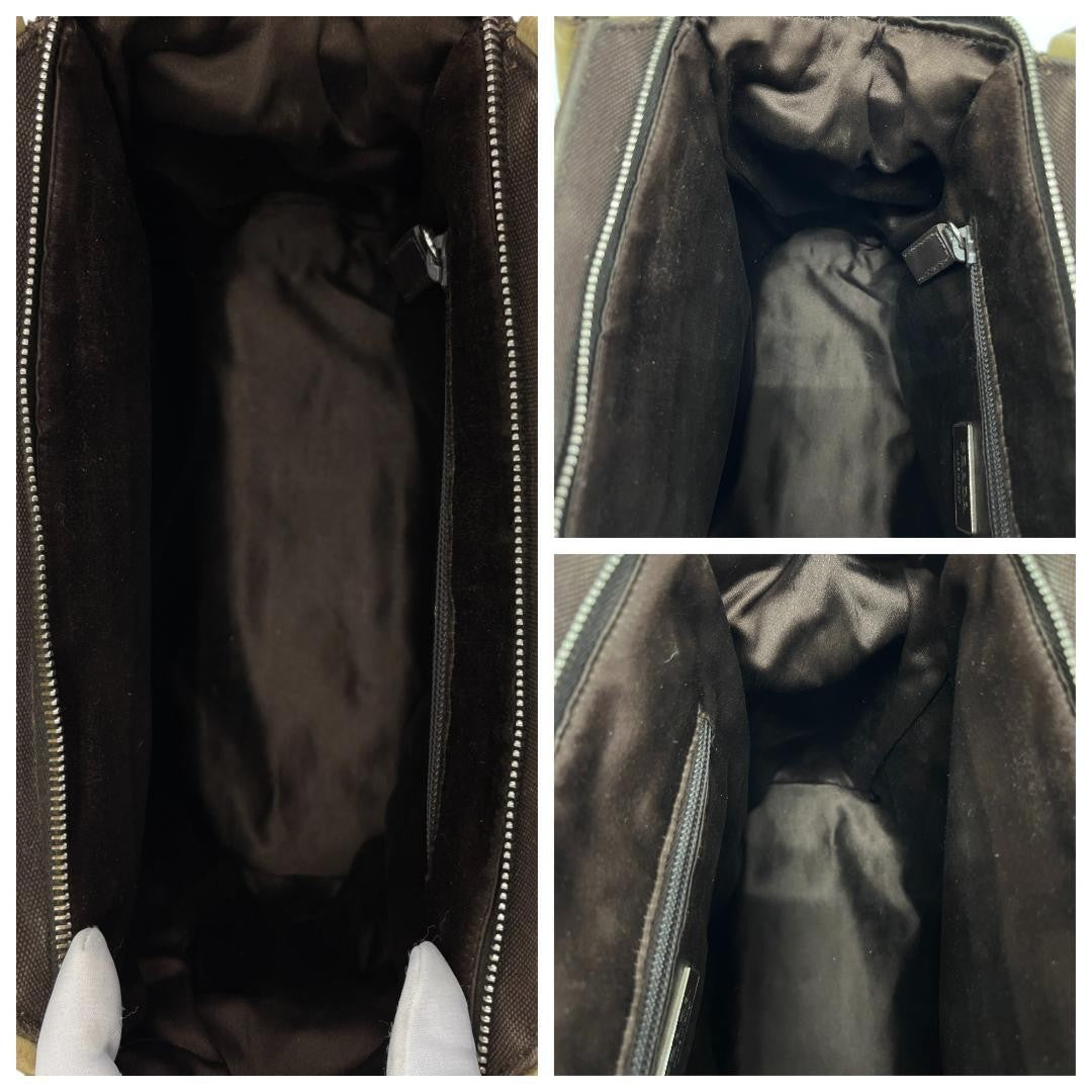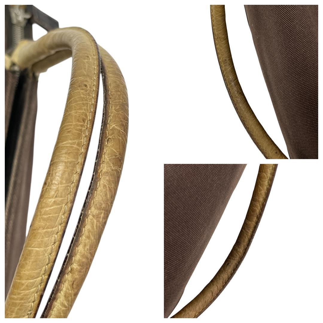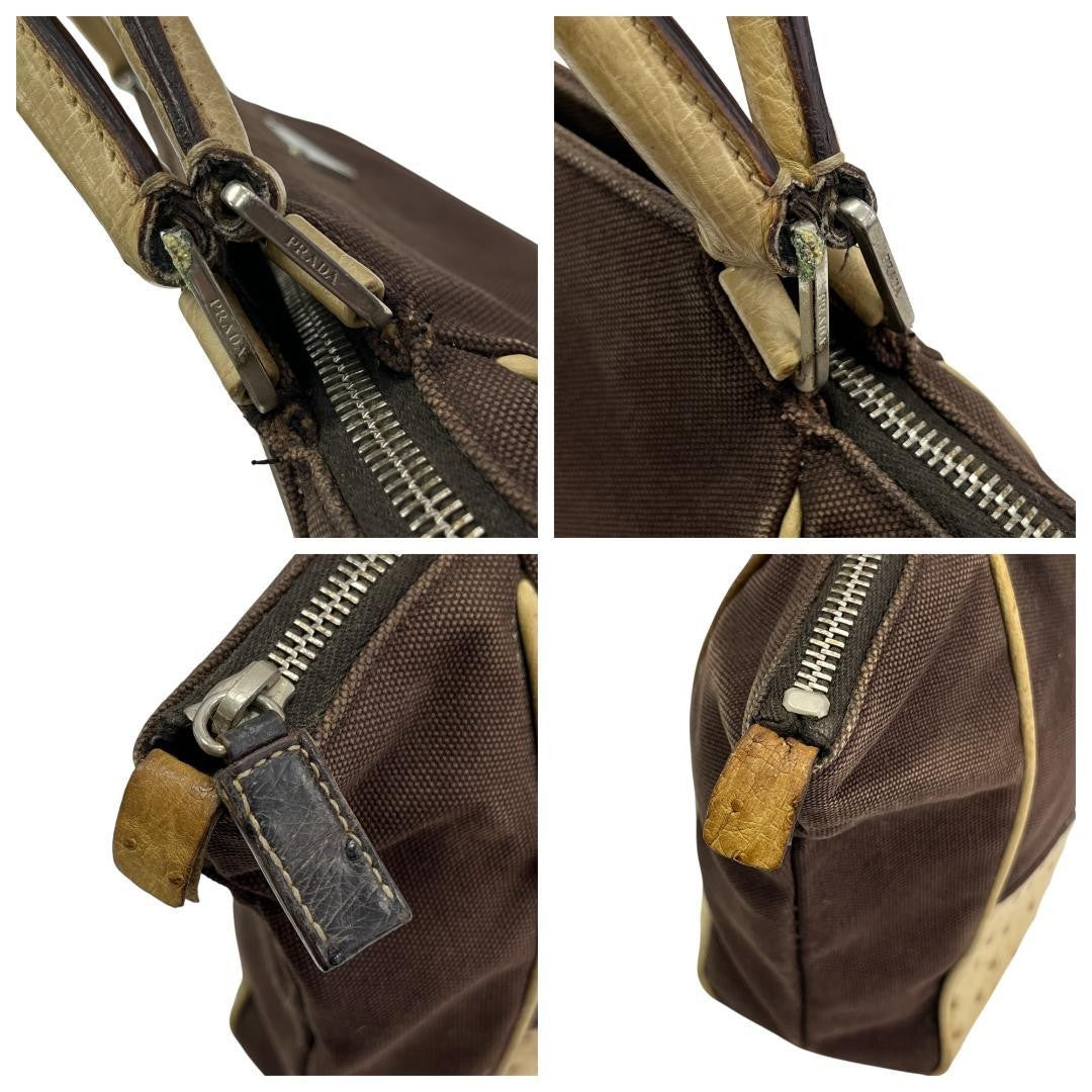 PRADA Hand Bag Tote Purse Logo Leather Canvas Brown Beige Authentic