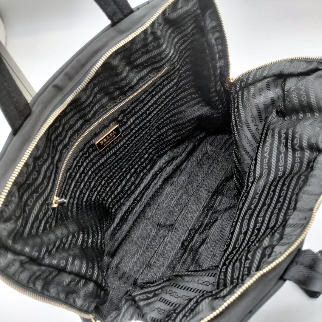 PRADA Hand Bag Tote Purse Logo Nylon Black Authentic