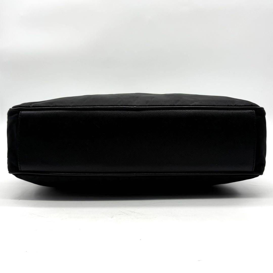 PRADA Hand Bag Tote Purse Logo Nylon Leather Black Authentic