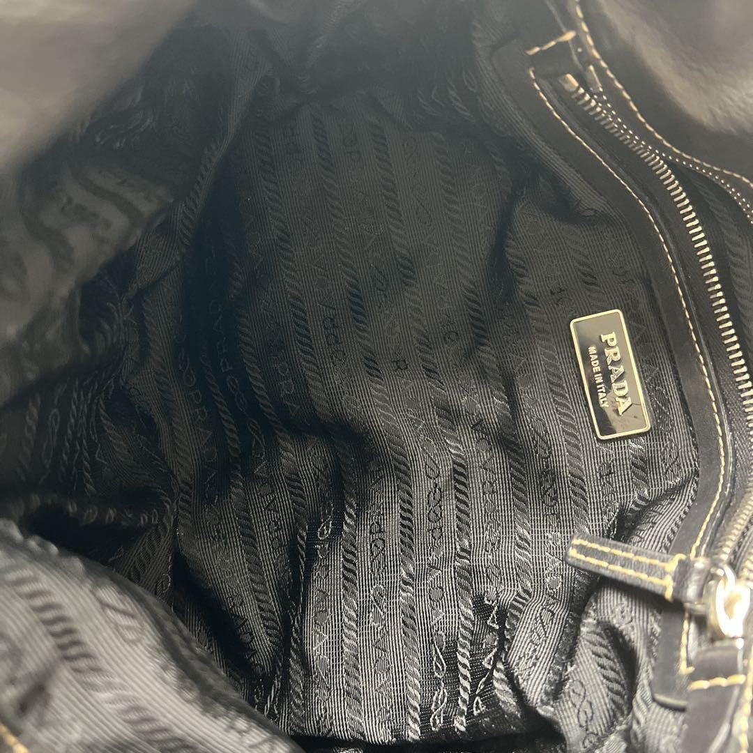 PRADA Hand Bag Tote Purse Logo Nylon Leather Black Authentic