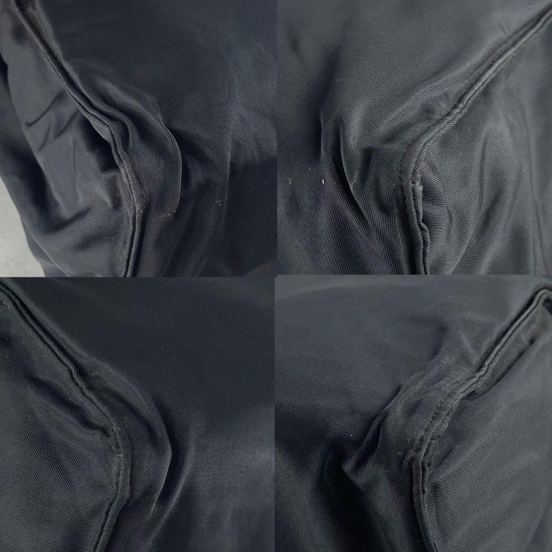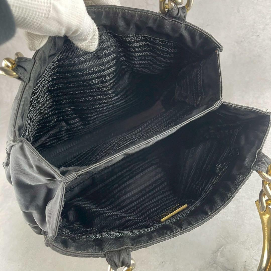 PRADA Hand Bag Tote Purse Logo Nylon Leather Black Gold Authentic