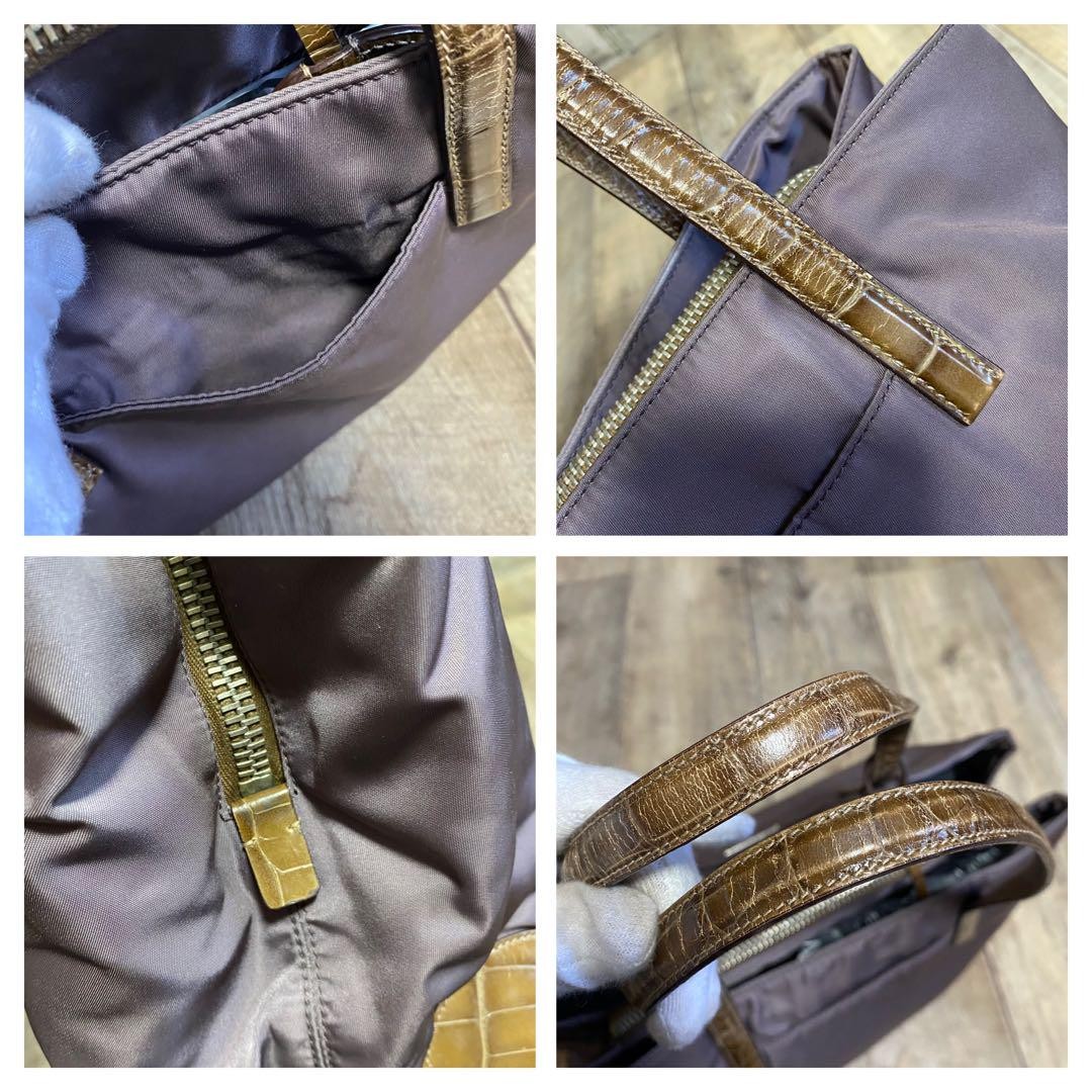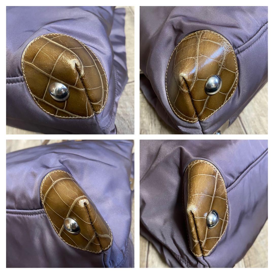 PRADA Hand Bag Tote Purse Logo Nylon Leather Canvas Dark Purple Authentic