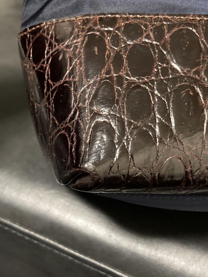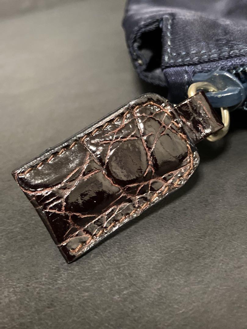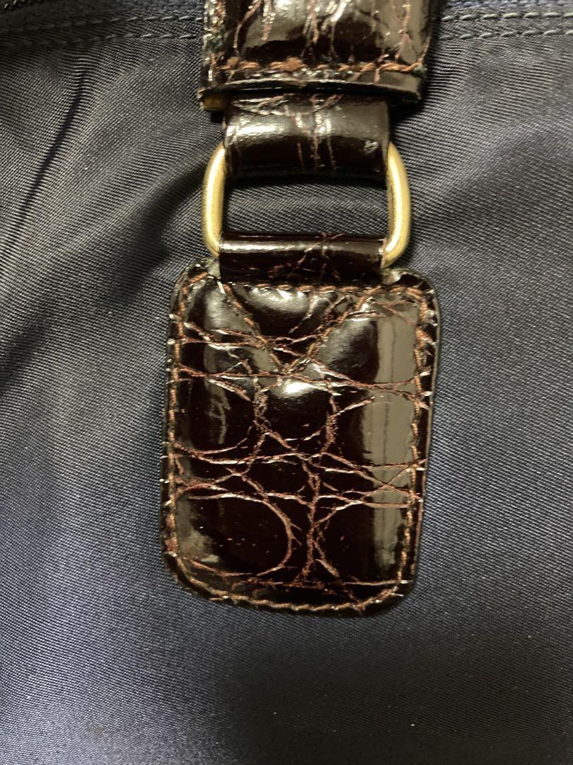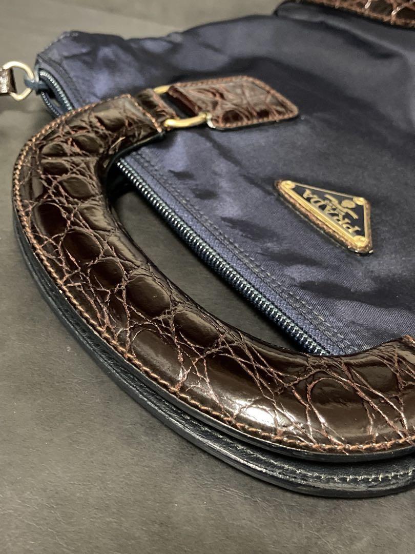 PRADA Hand Bag Tote Purse Logo Nylon Leather Navy Brown Authentic