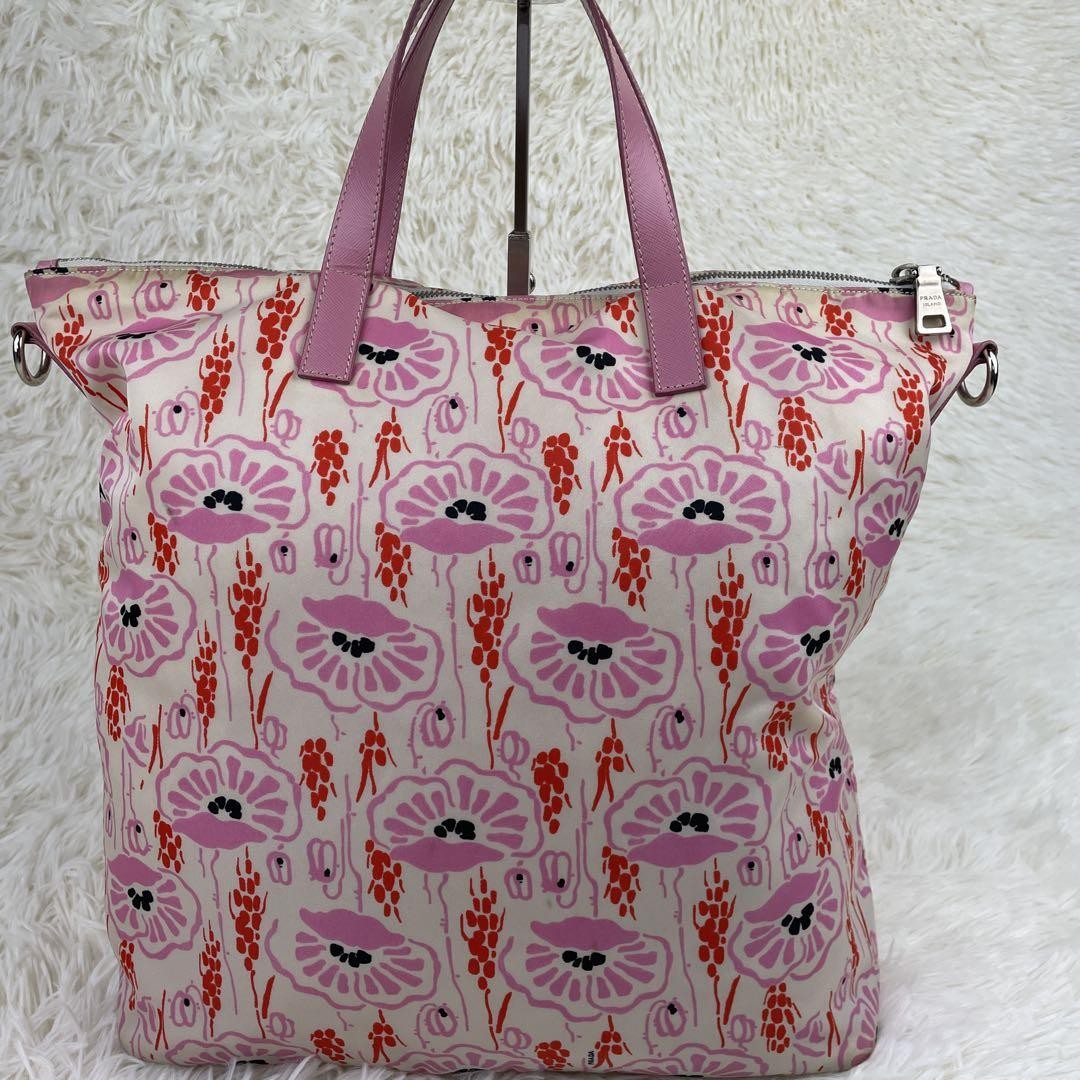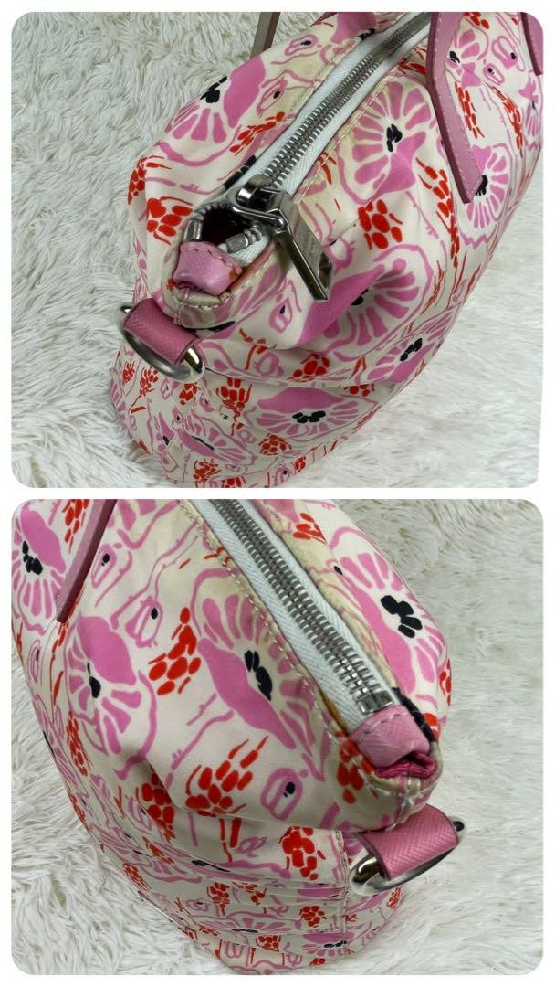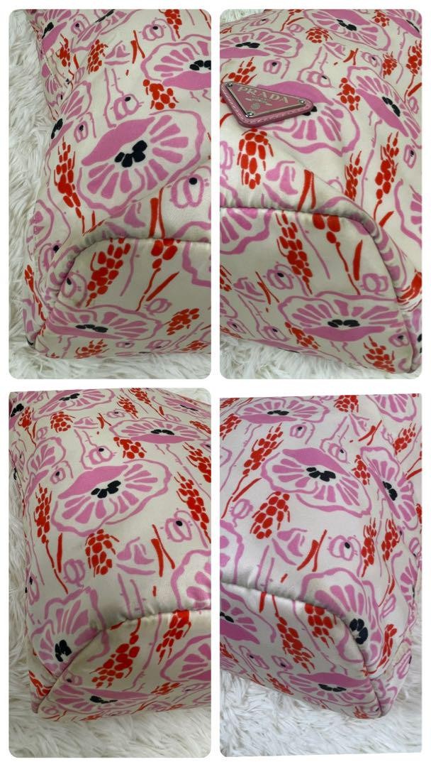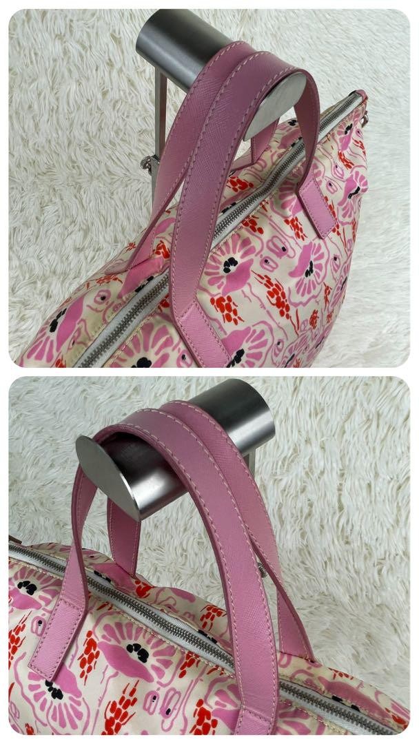 PRADA Hand Bag Tote Purse Logo Nylon Leather Pink Authentic