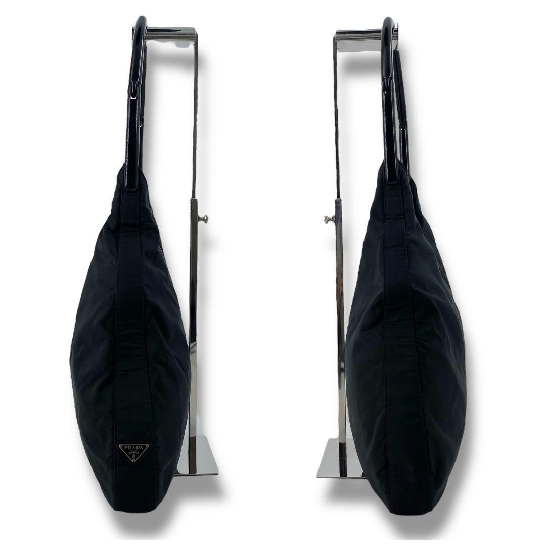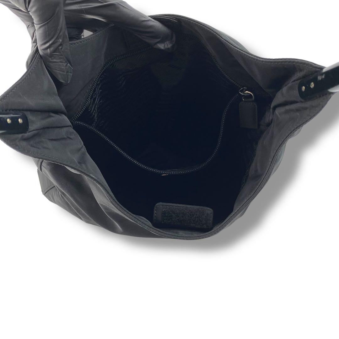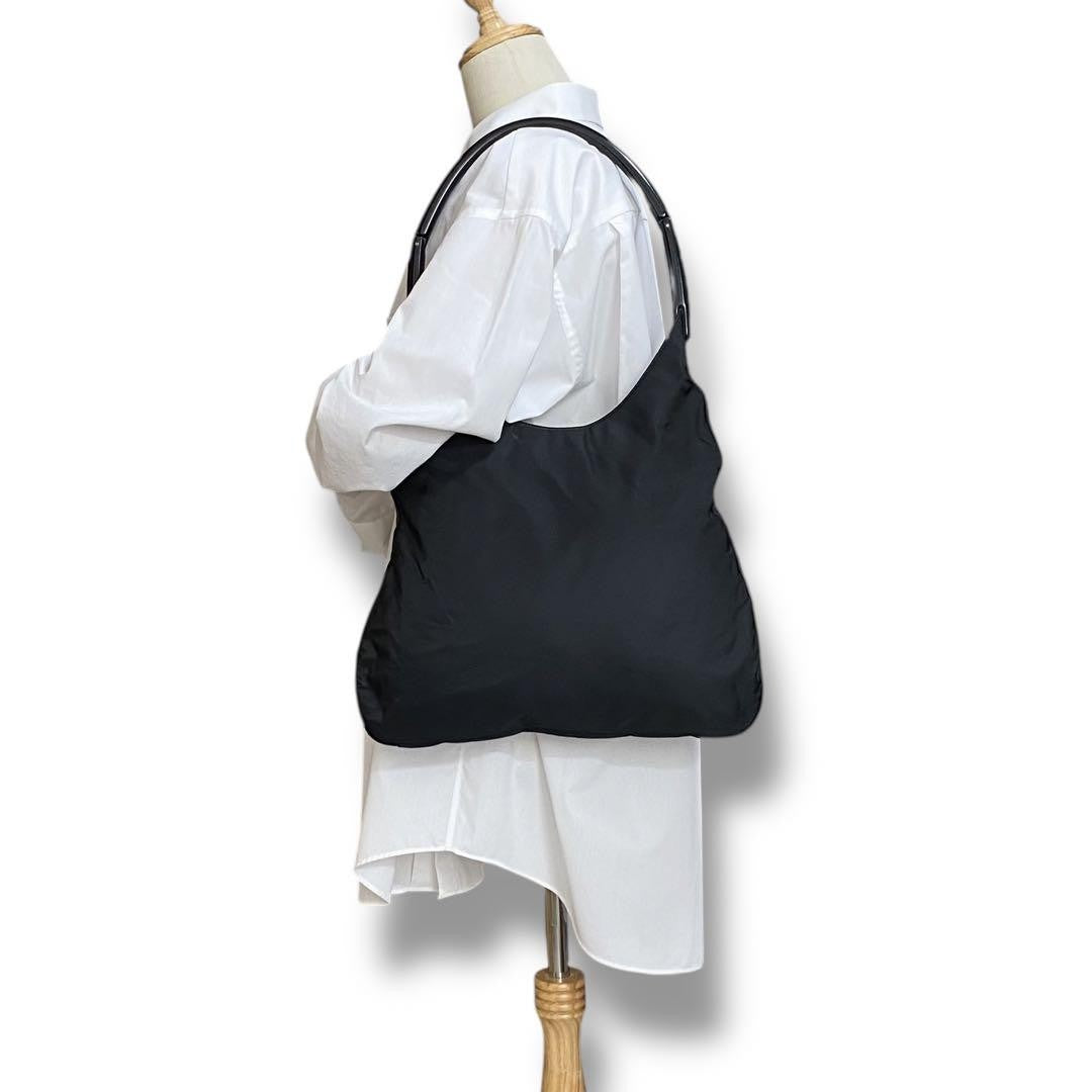 PRADA Hand Bag Tote Purse Logo Nylon Plastic Black Authentic