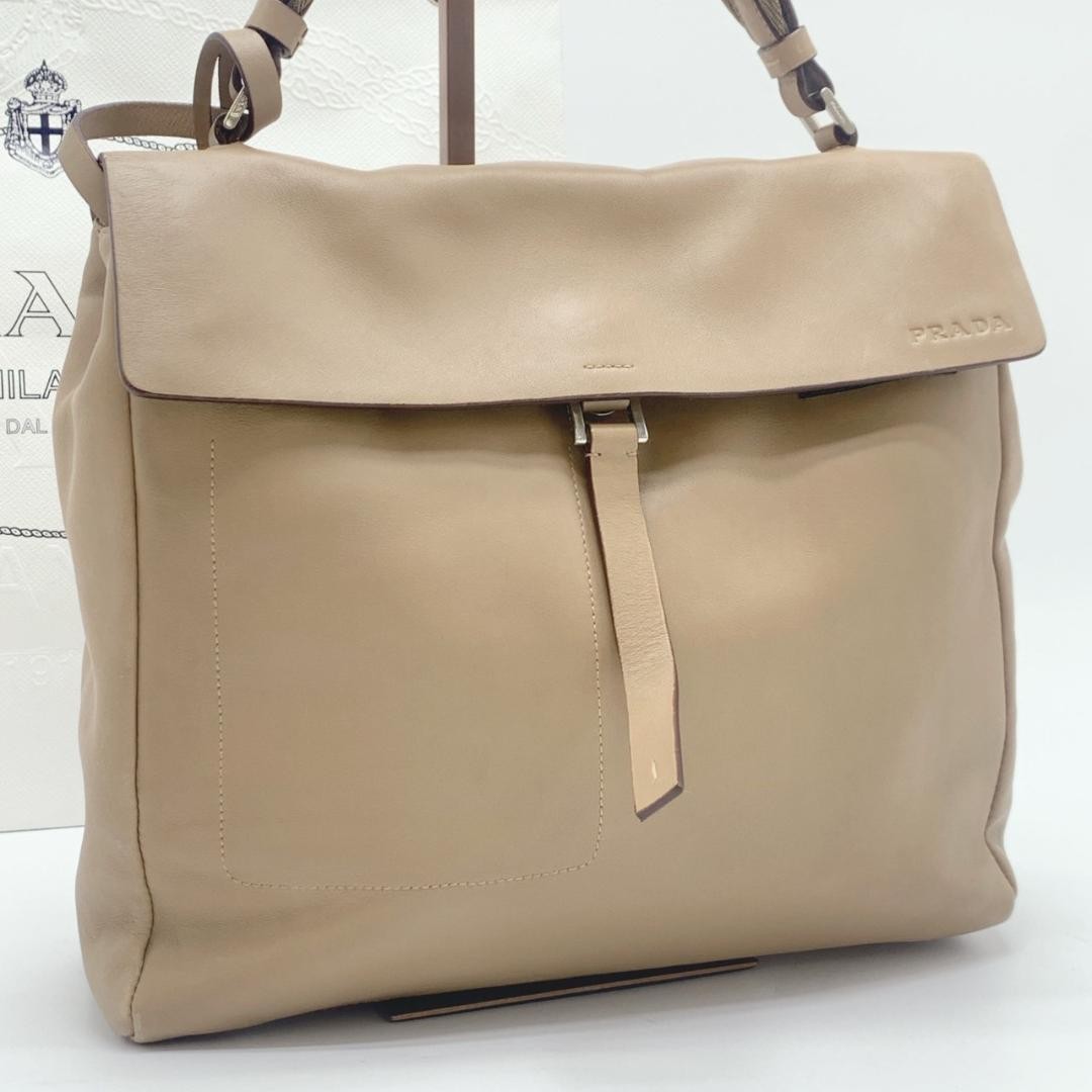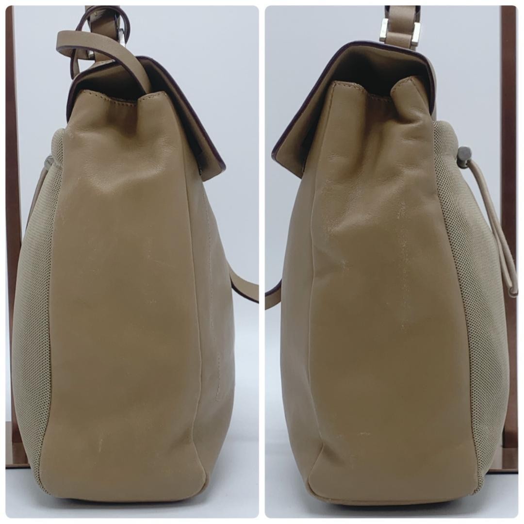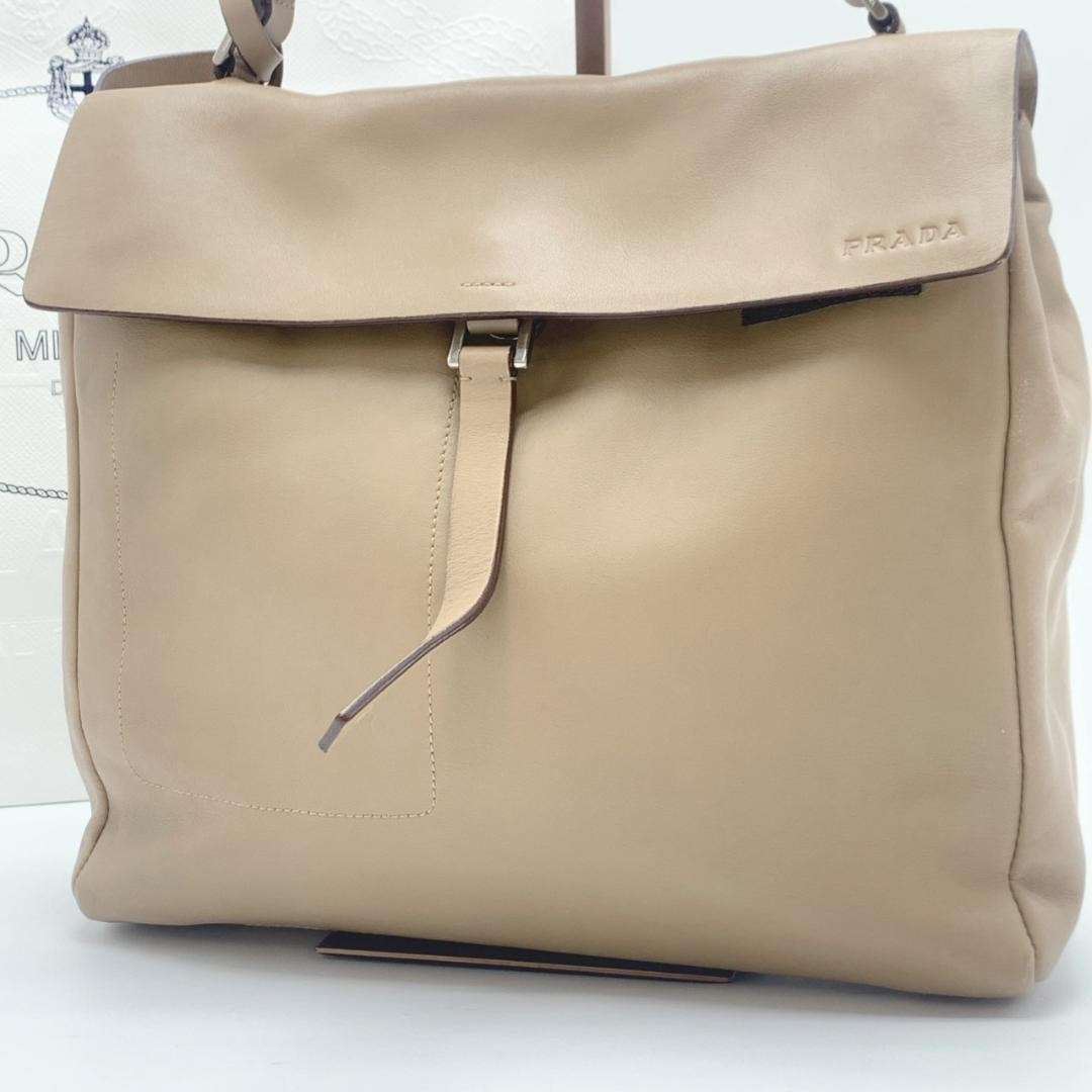 PRADA Hand Bag Tote Purse Nylon Leather Canvas Beige Authentic