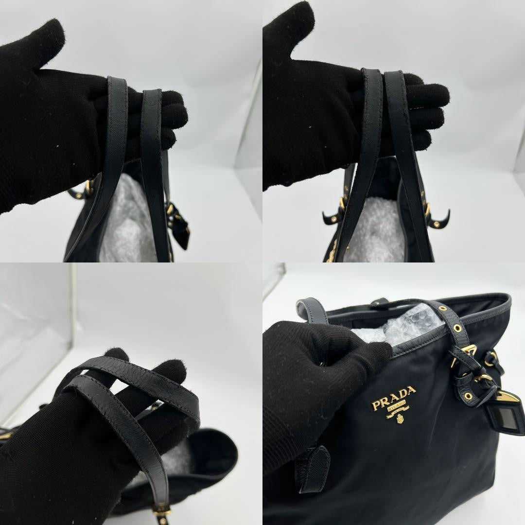 PRADA Hand Bag Tote Purse Nylon Leather Dark Navy Authentic