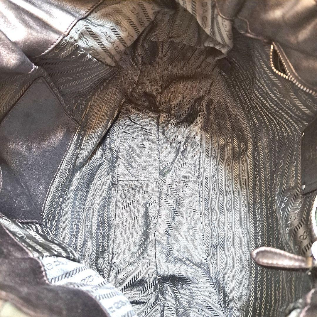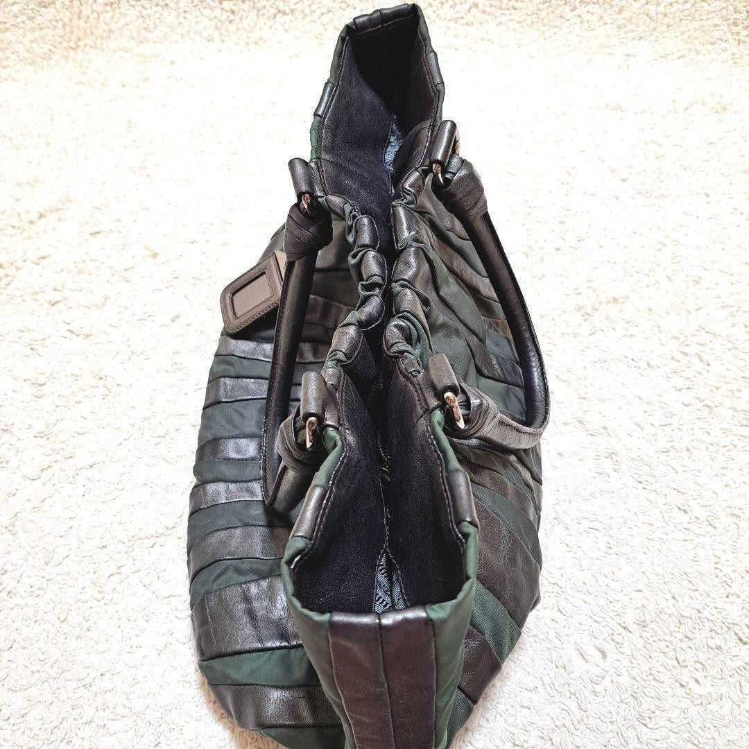 PRADA Hand Bag Tote Purse Nylon Leather Stripe Khaki Authentic