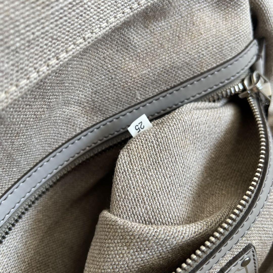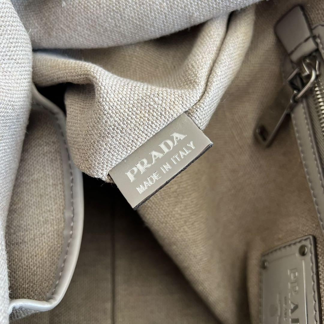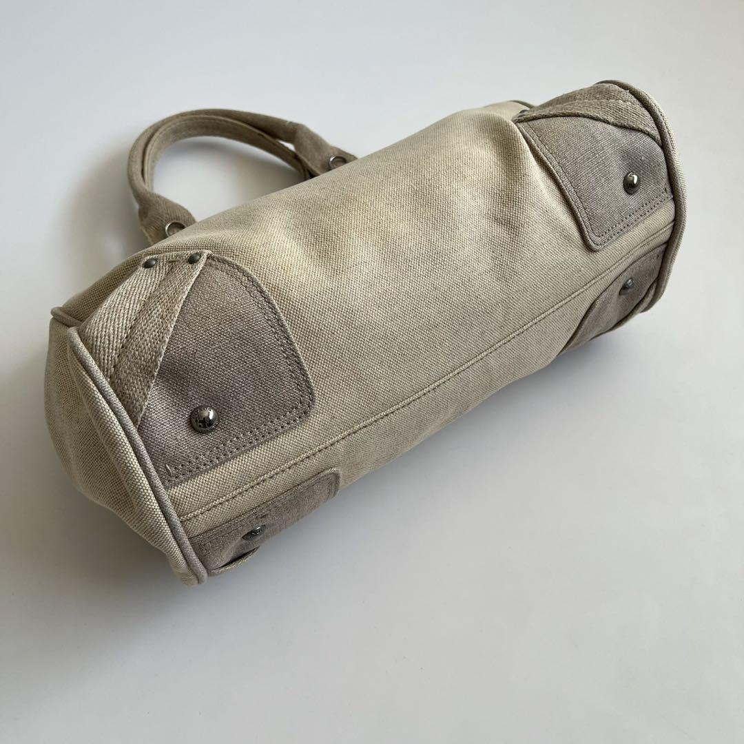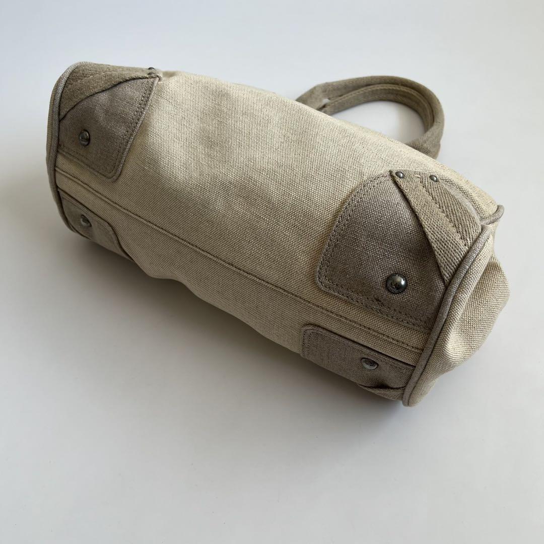 PRADA Hand Boston Bag Tote Purse Canvas Beige Off White Authentic