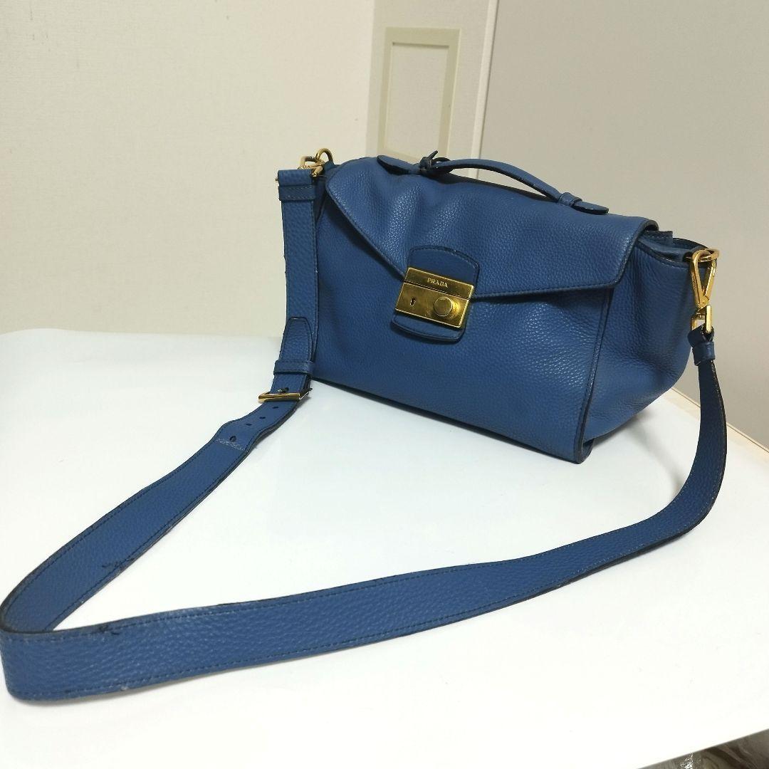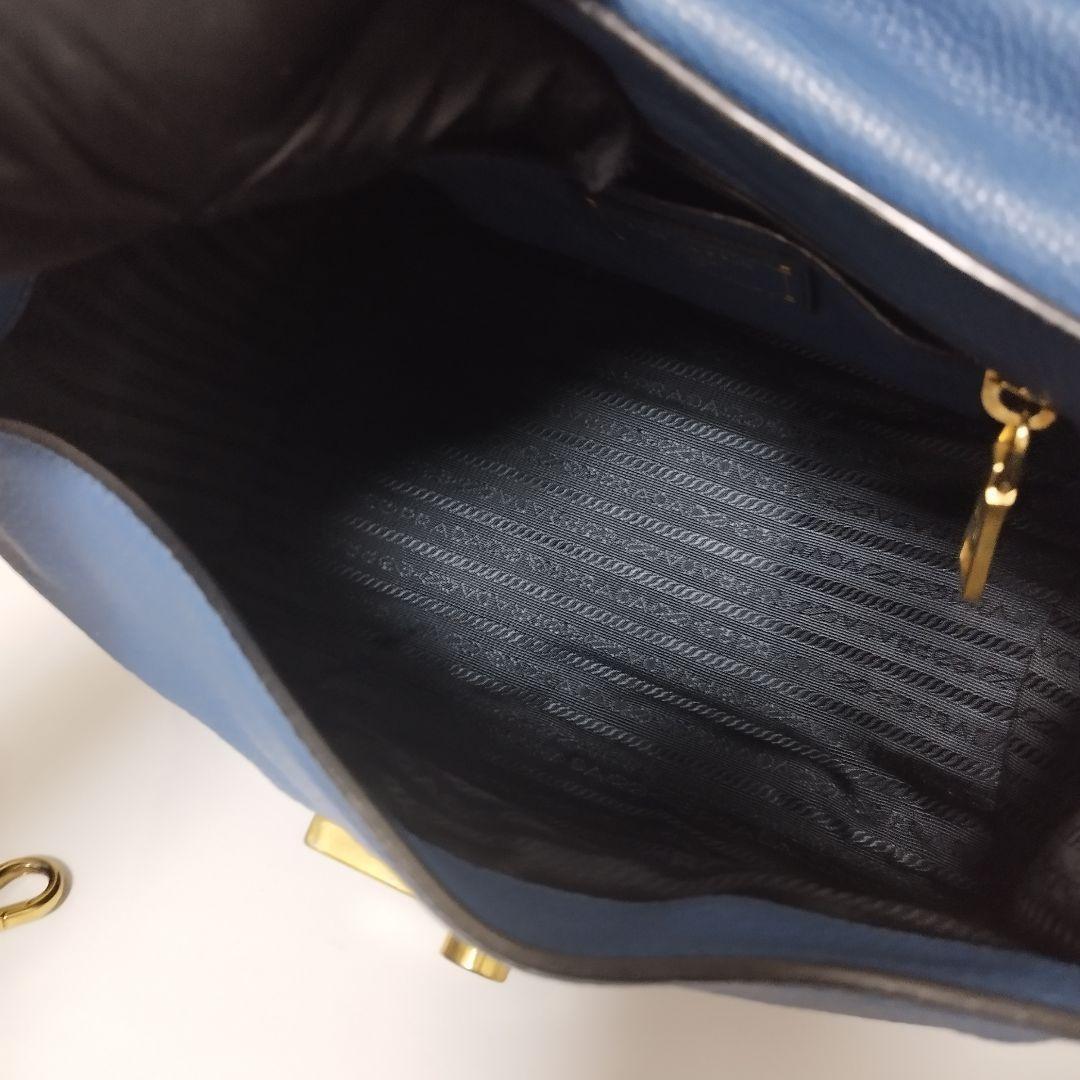 PRADA Hand Shoulder Bag Tote Purse 2way Leather Blue Authentic