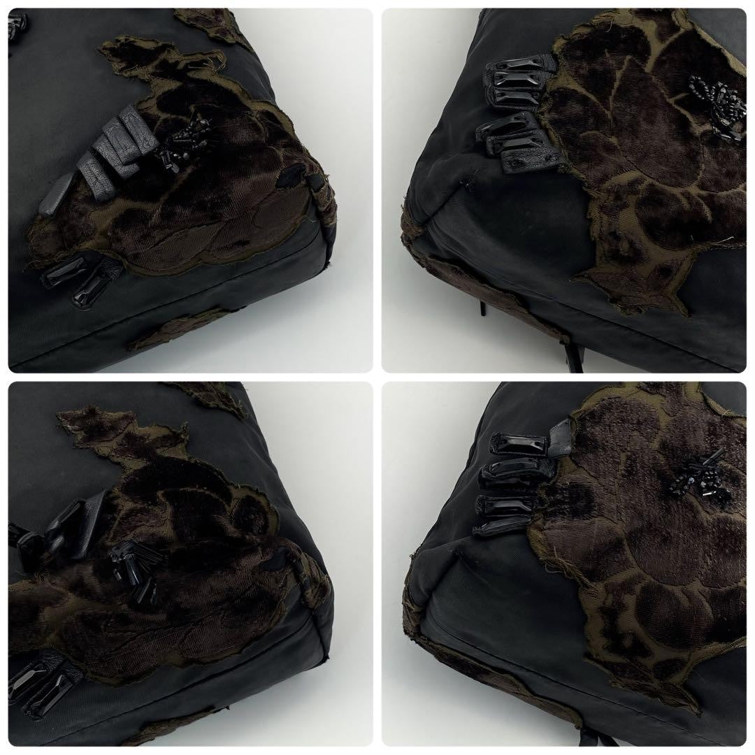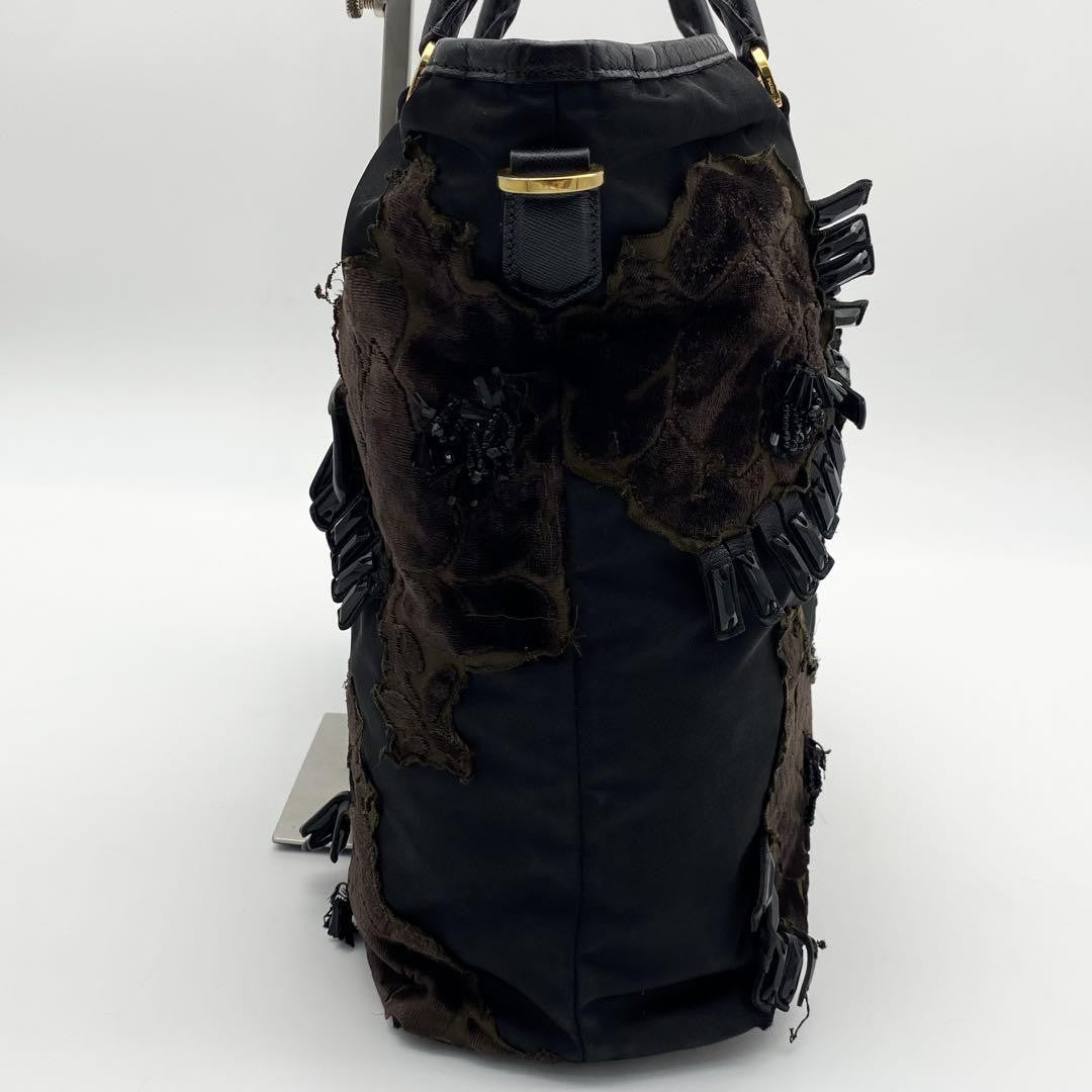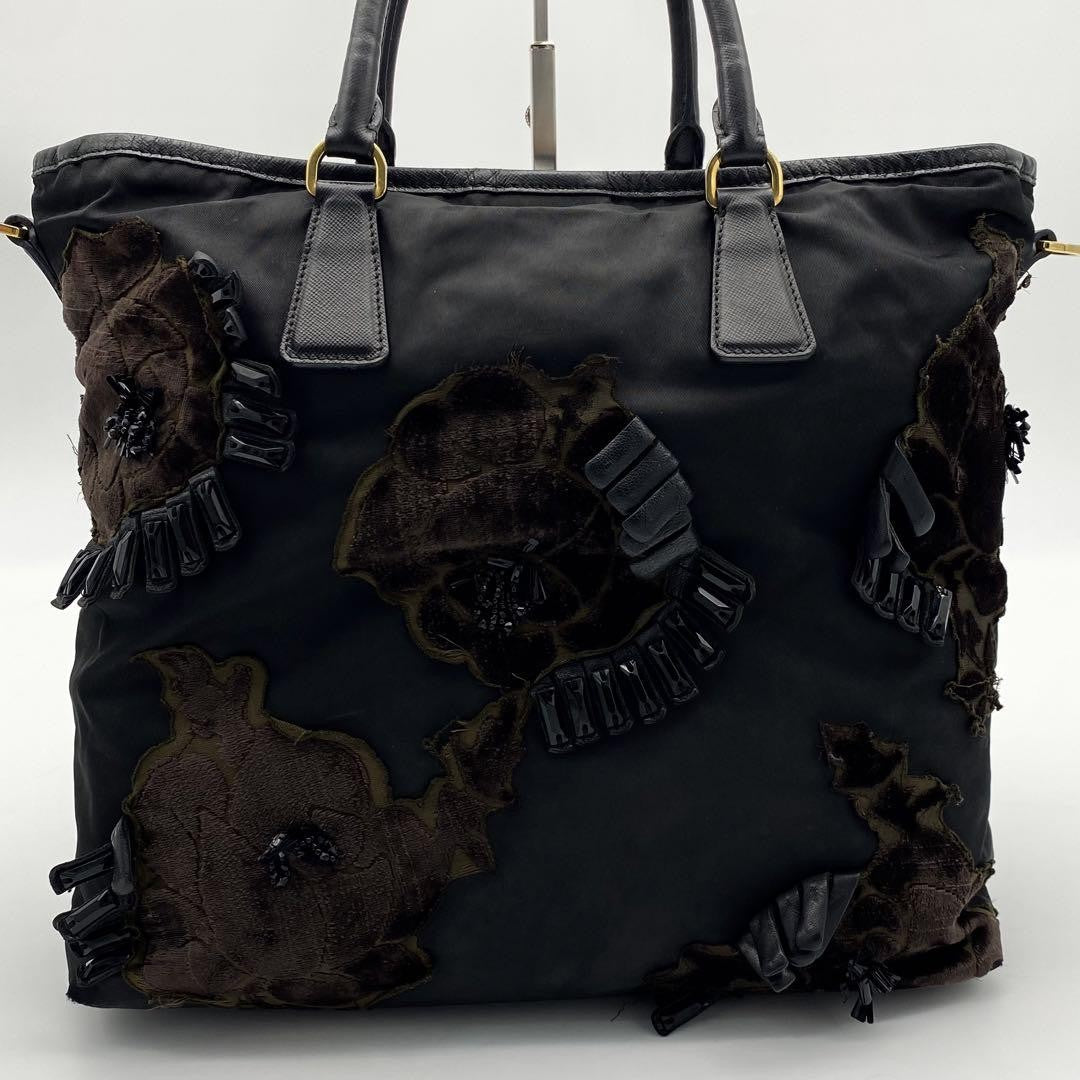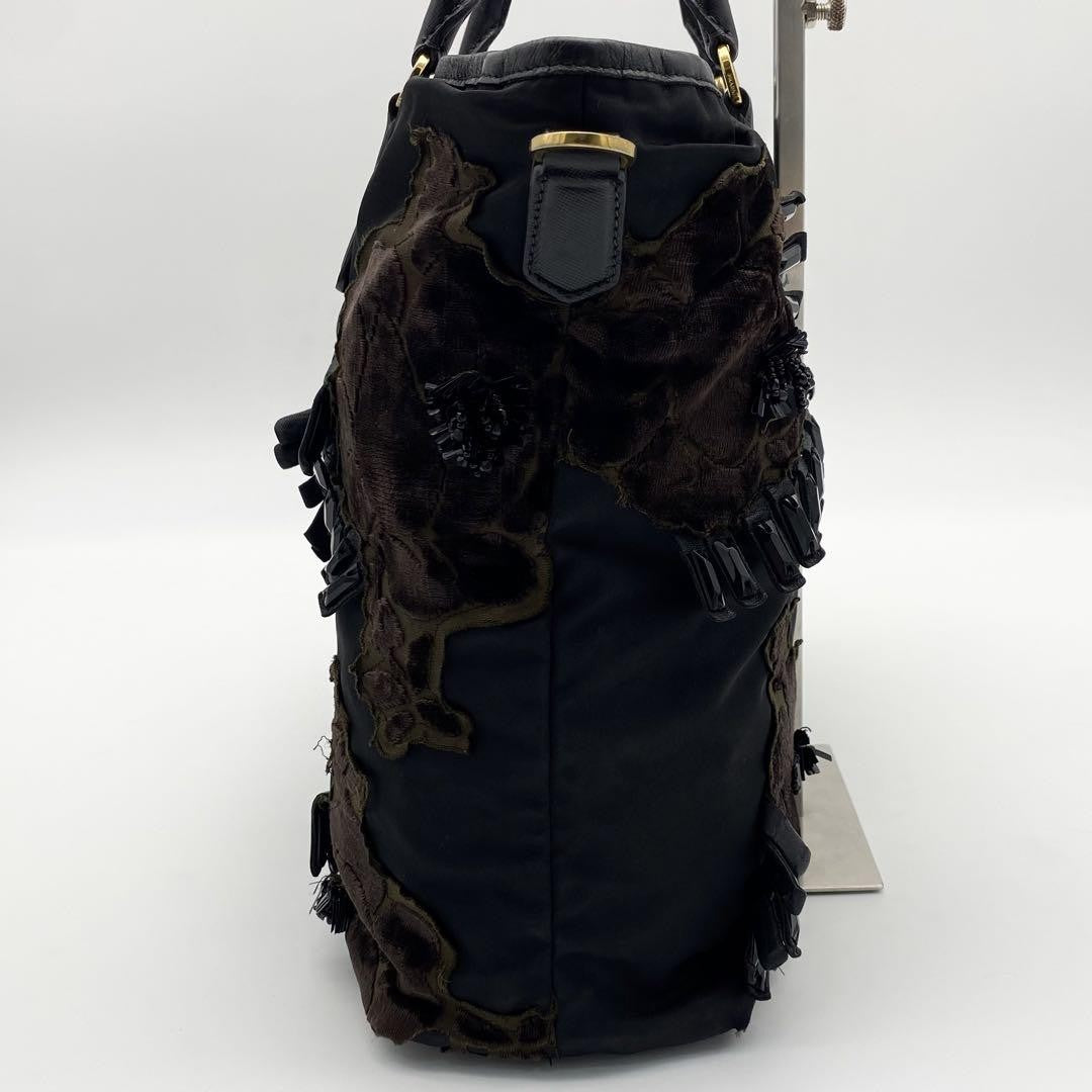 PRADA Hand Shoulder Bag Tote Purse 2way Logo Nylon Leather Black Authentic