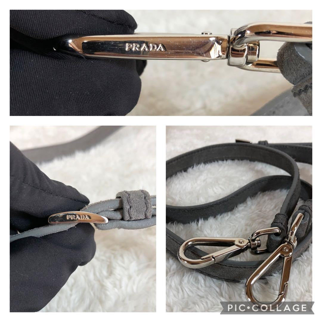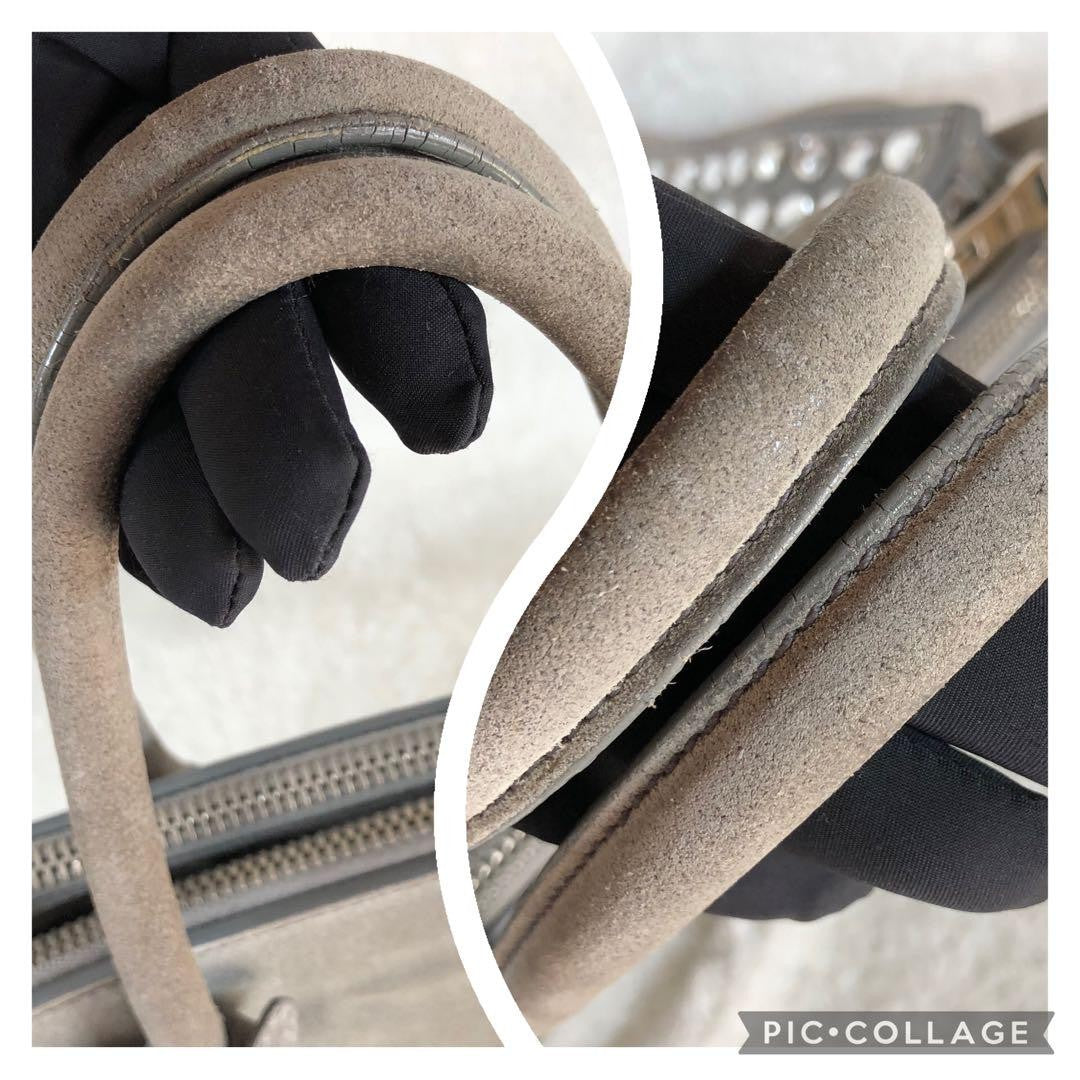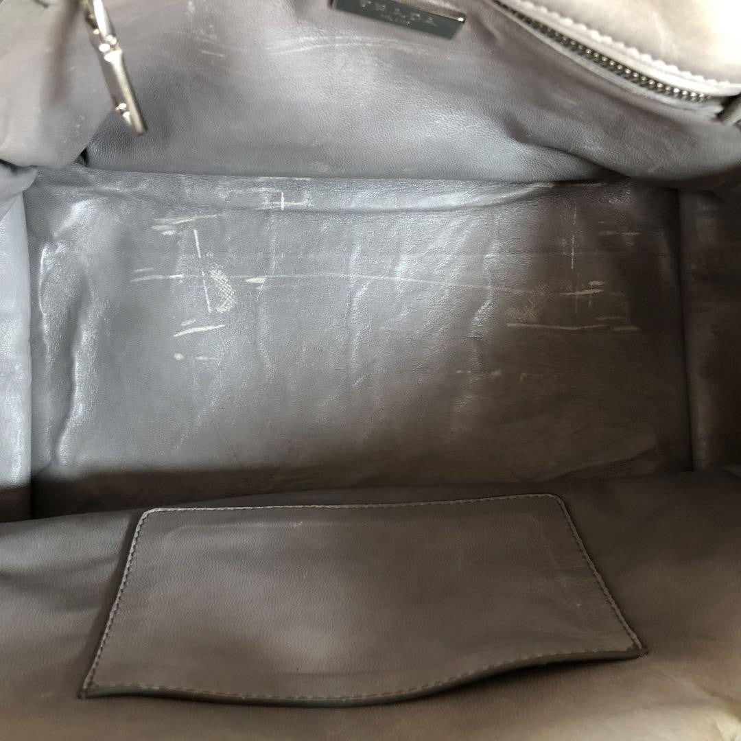 PRADA Hand Shoulder Bag Tote Purse 2way Logo Suede Gray Authentic