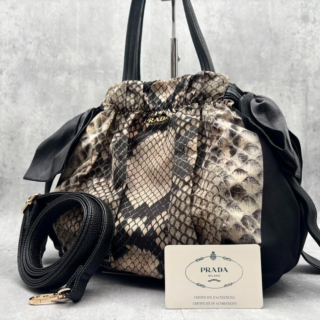 PRADA Hand Shoulder Bag Tote Purse 2way Nylon Leather Black Authentic