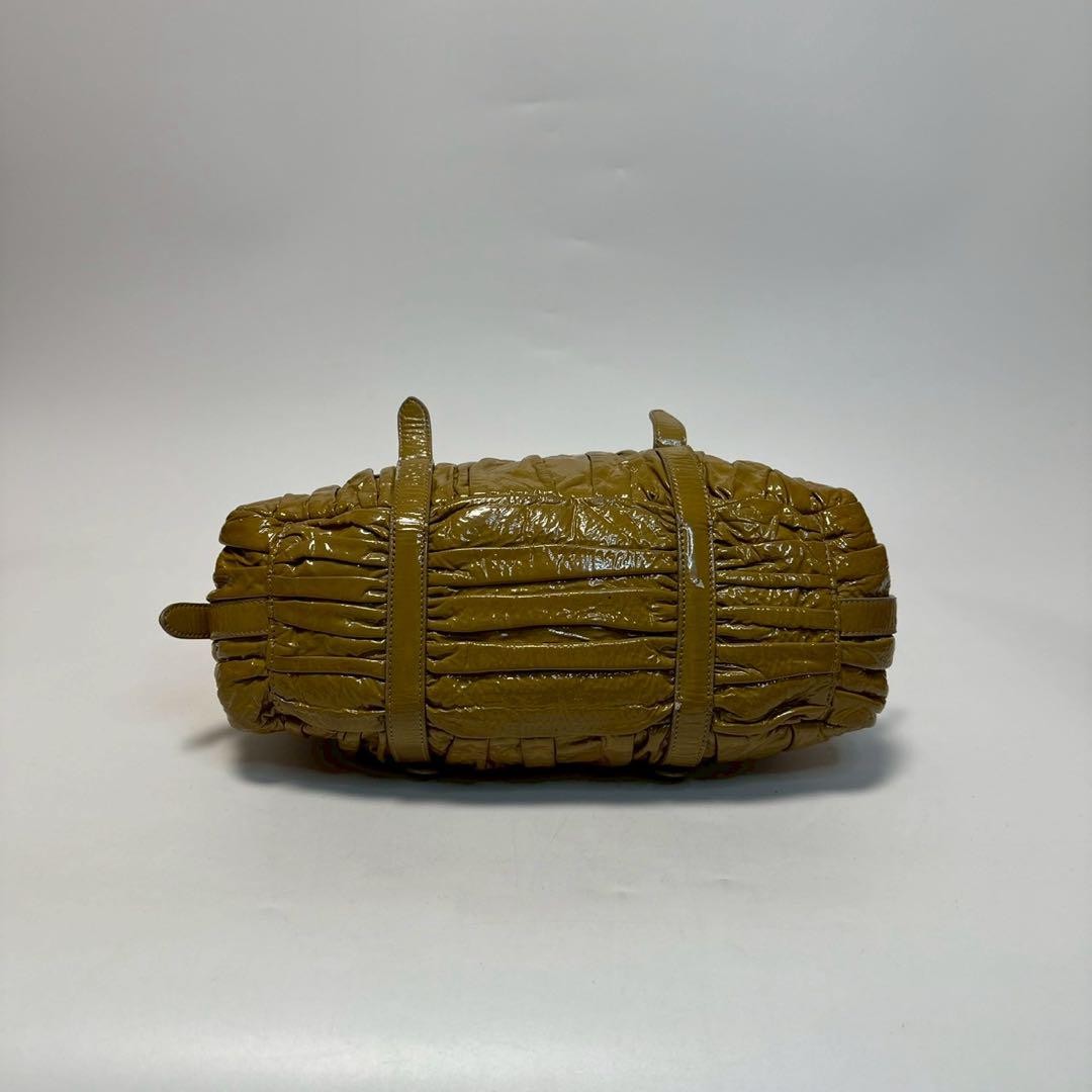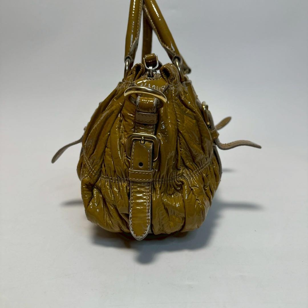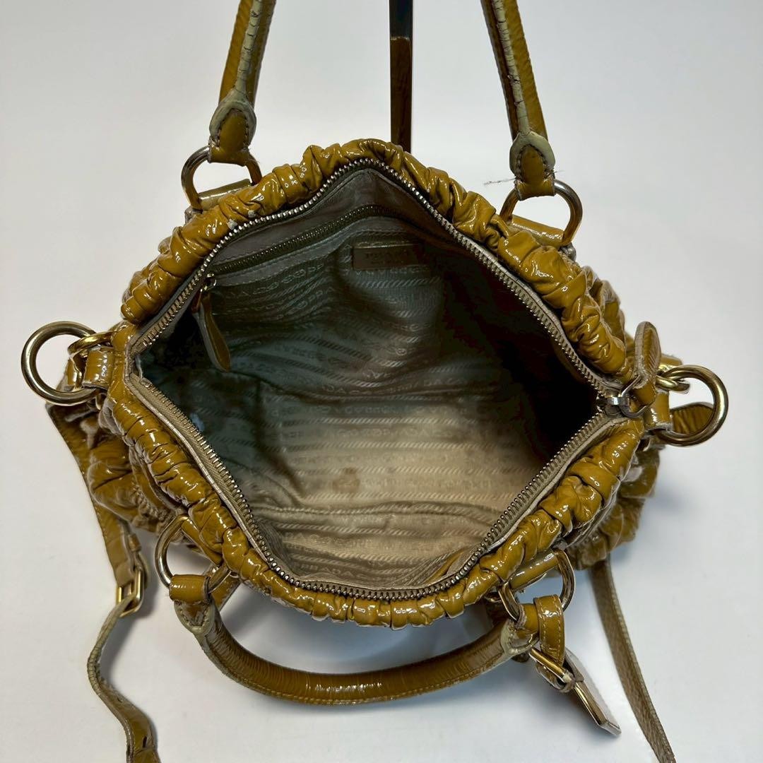 PRADA Hand Shoulder Bag Tote Purse 2way Patent Leather Brown Beige Authentic