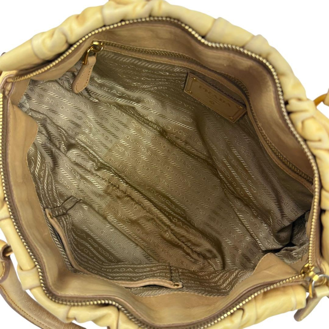 PRADA Hand Shoulder Bag Tote Purse Gather Leather Beige Authentic