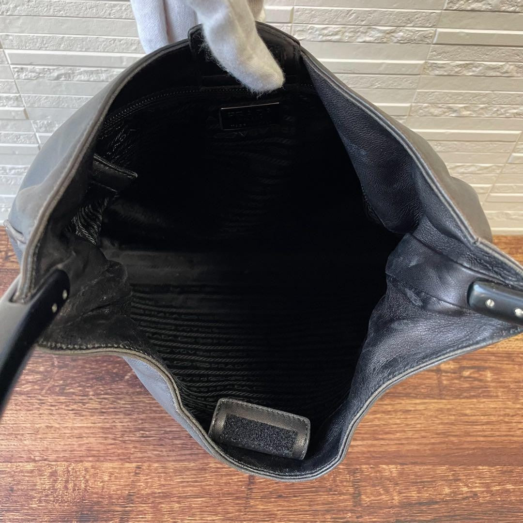 PRADA Hand Shoulder Bag Tote Purse Leather Gray Authentic