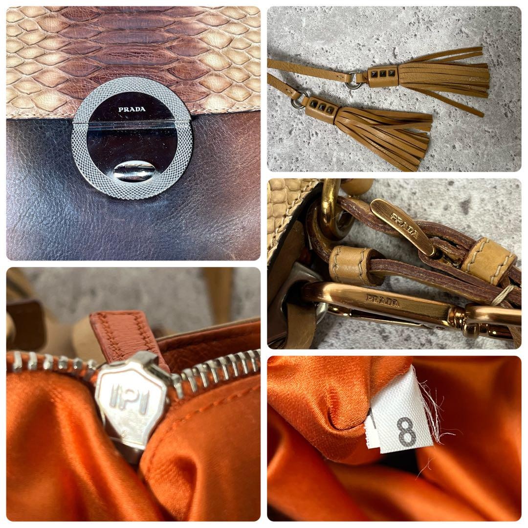 PRADA Hand Shoulder Bag Tote Purse Metal Logo Leather Brown Camel Authentic