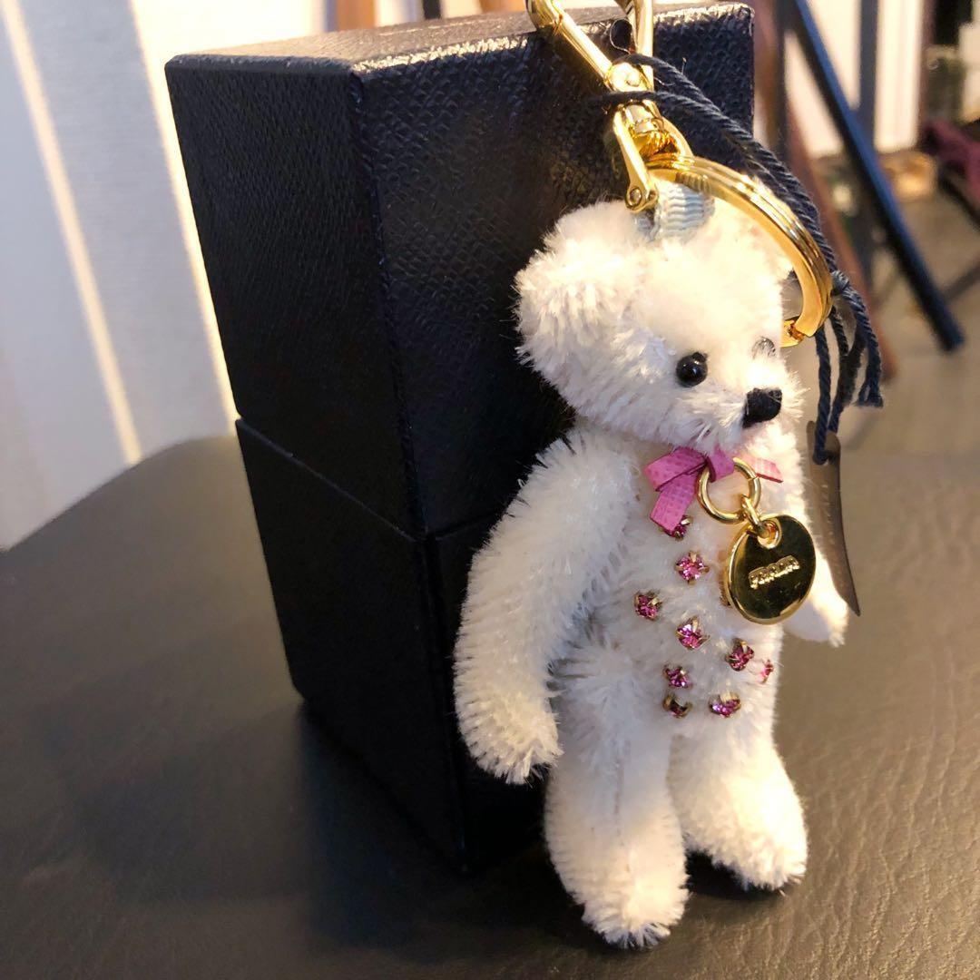 PRADA Key Ring Keychain Bag Charm Bear Cream Authentic