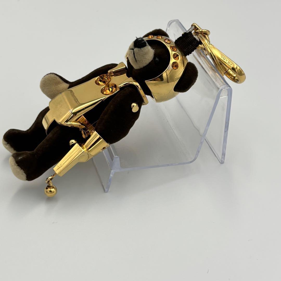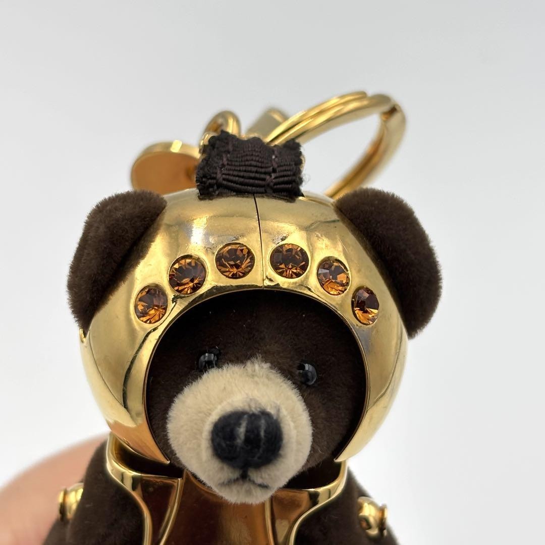 PRADA Key Ring Keychain Bag Charm Bear Dark Brown Gold Authentic
