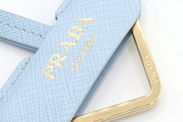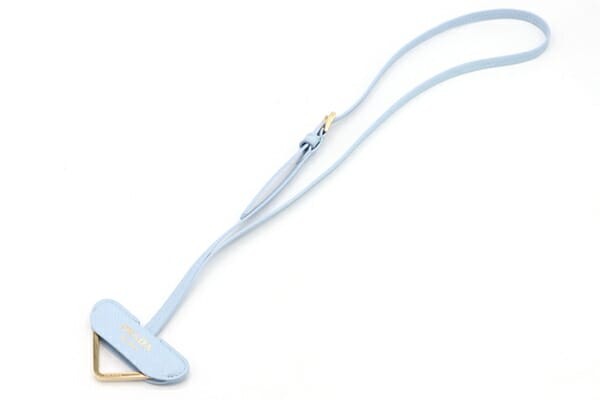 PRADA Key Ring Keychain Bag Charm Logo Light Blue Leather Authentic