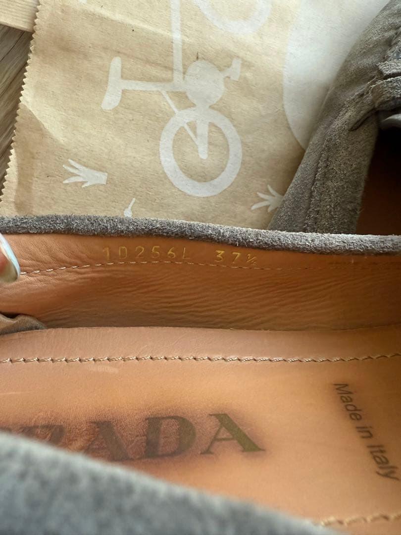 PRADA Loafers Shoes EU 37.5 US 7.5 Suede Gray Authentic