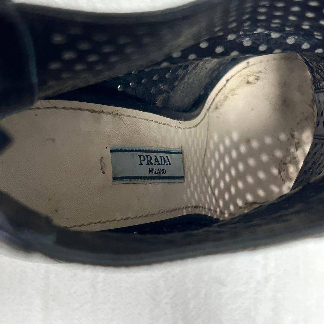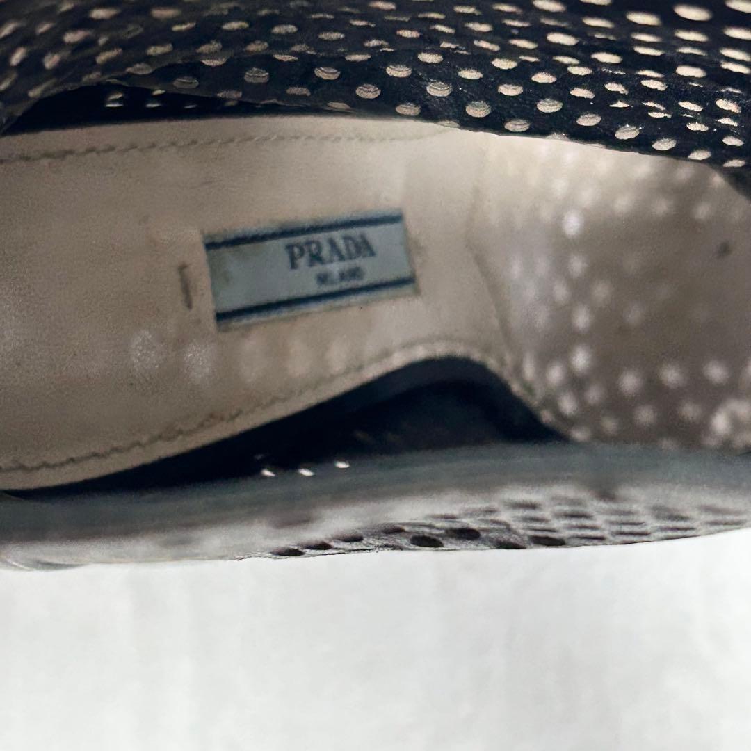 PRADA Short Boots Shoes EU 36.5 US 6.5 Perforated Leather Black Authentic