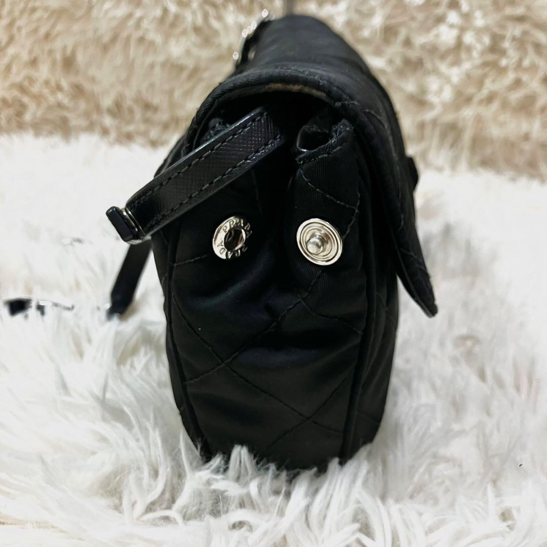 PRADA Shoulder Bag Purse 2way Quilting Chain Nylon Black Authentic