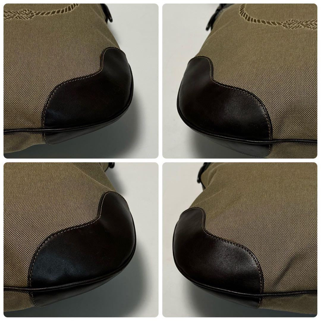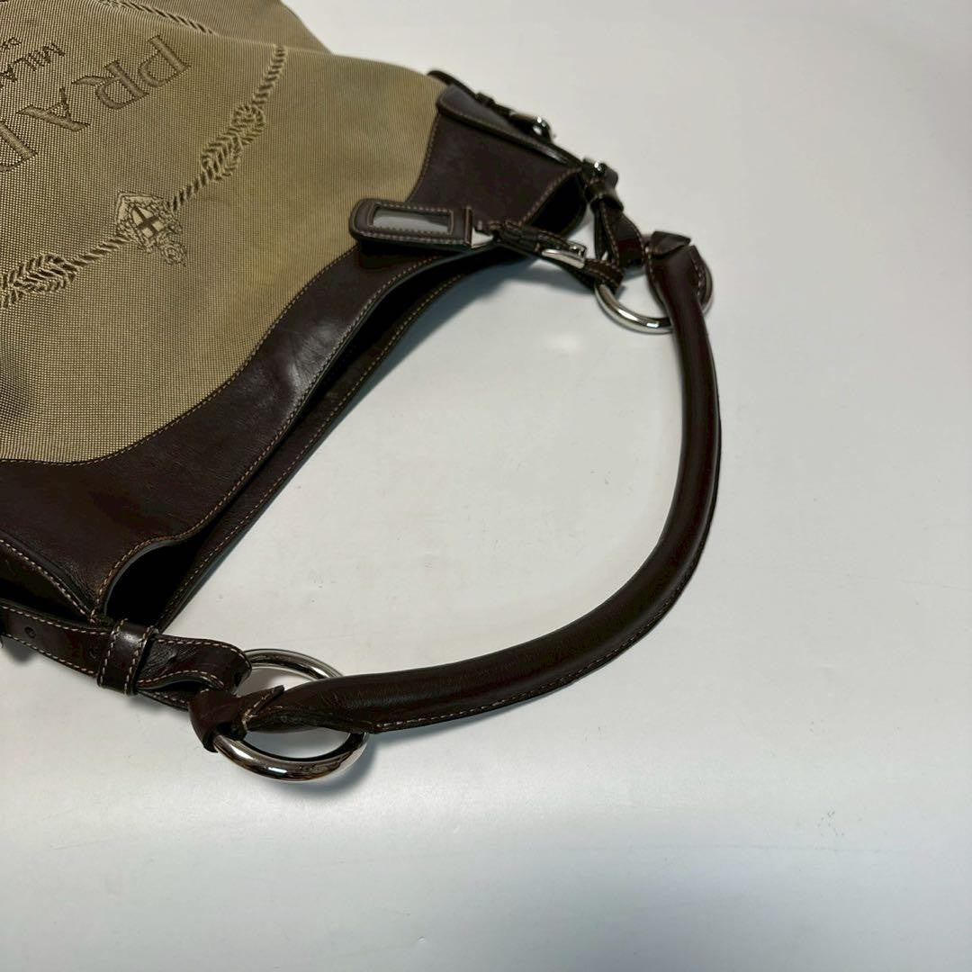 PRADA Shoulder Bag Purse Canvas Leather Beige Authentic