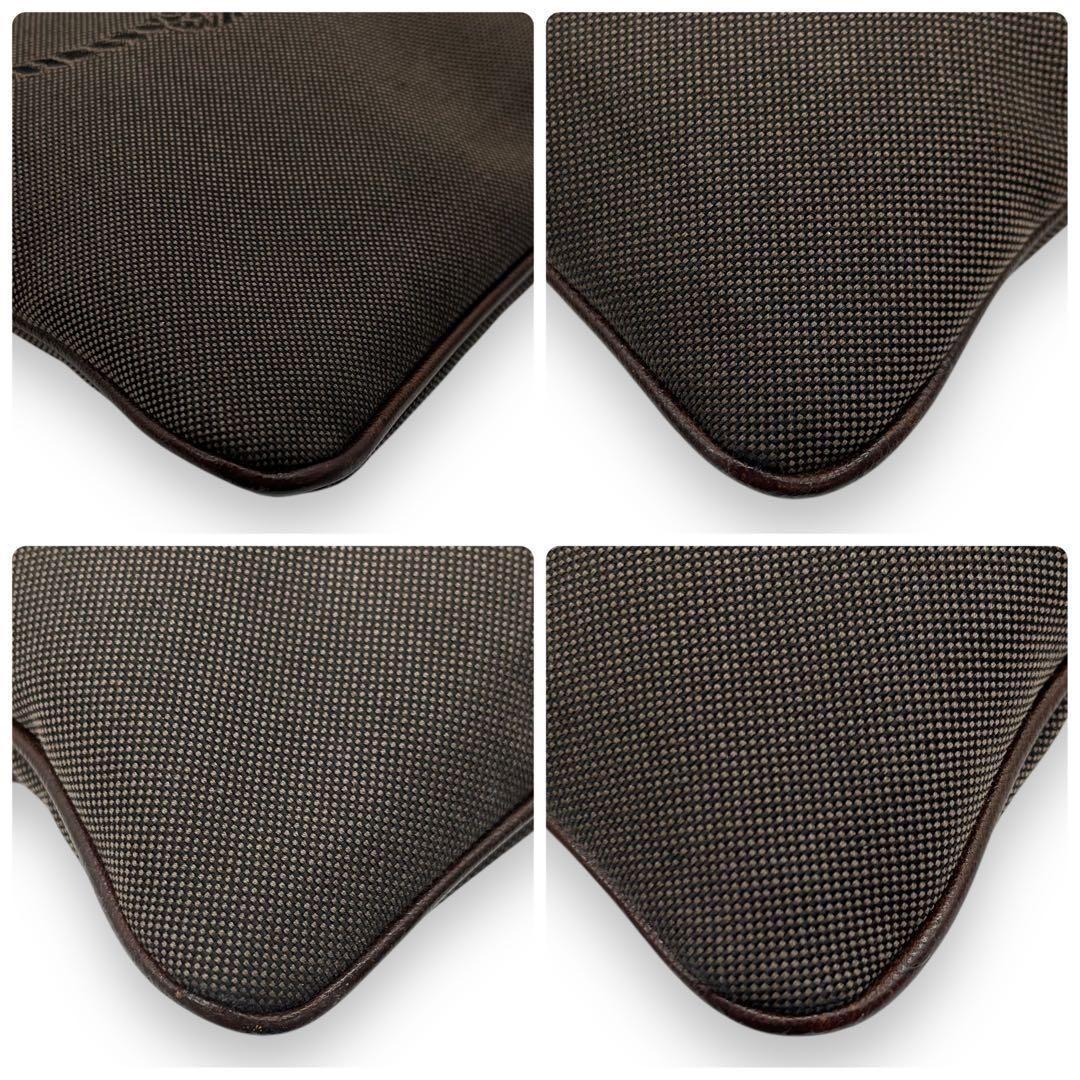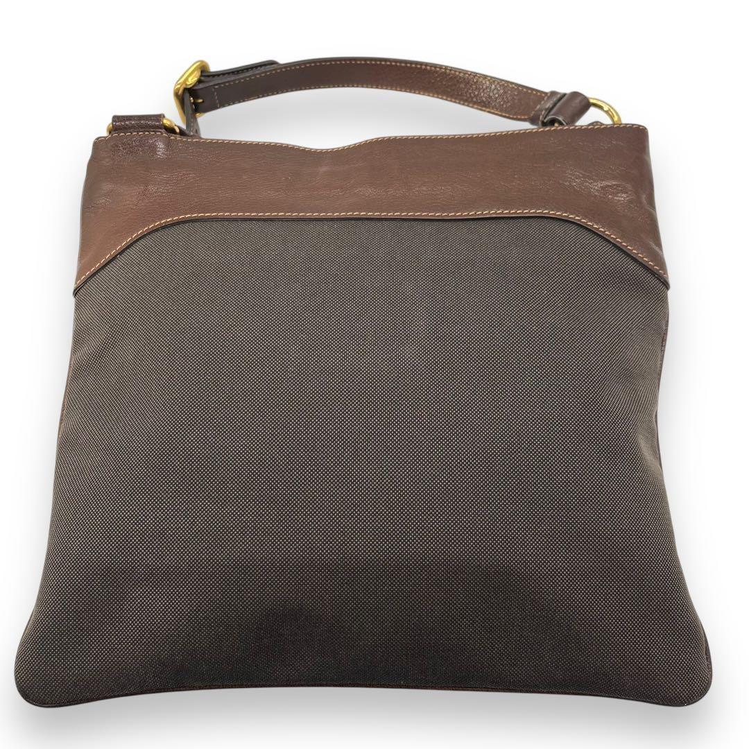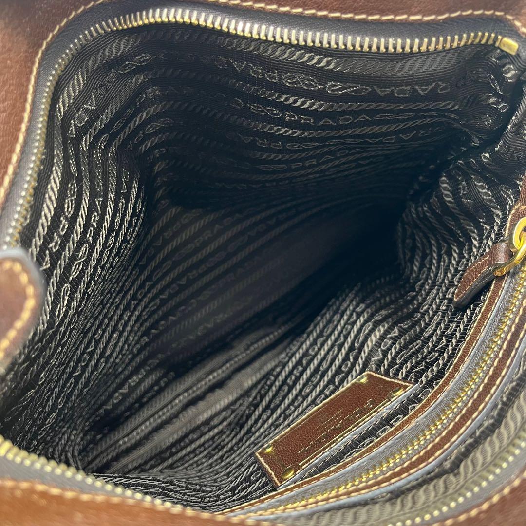 PRADA Shoulder Bag Purse Canvas Leather Brown Authentic