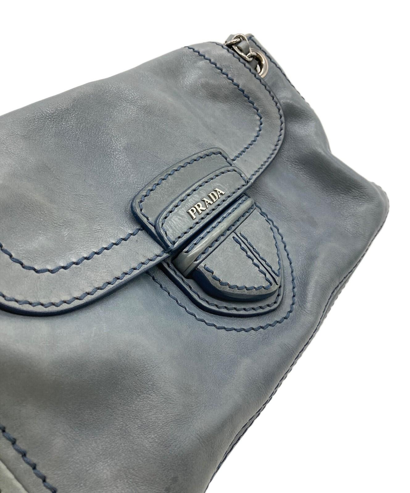 PRADA Shoulder Bag Purse Chain Leather Blue Authentic