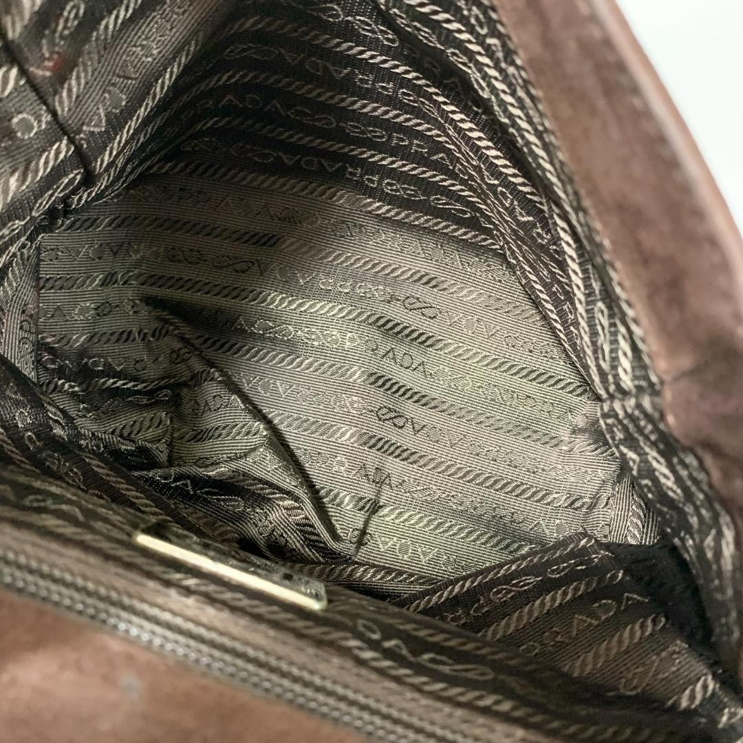 PRADA Shoulder Bag Purse Chain Suede Brown Authentic