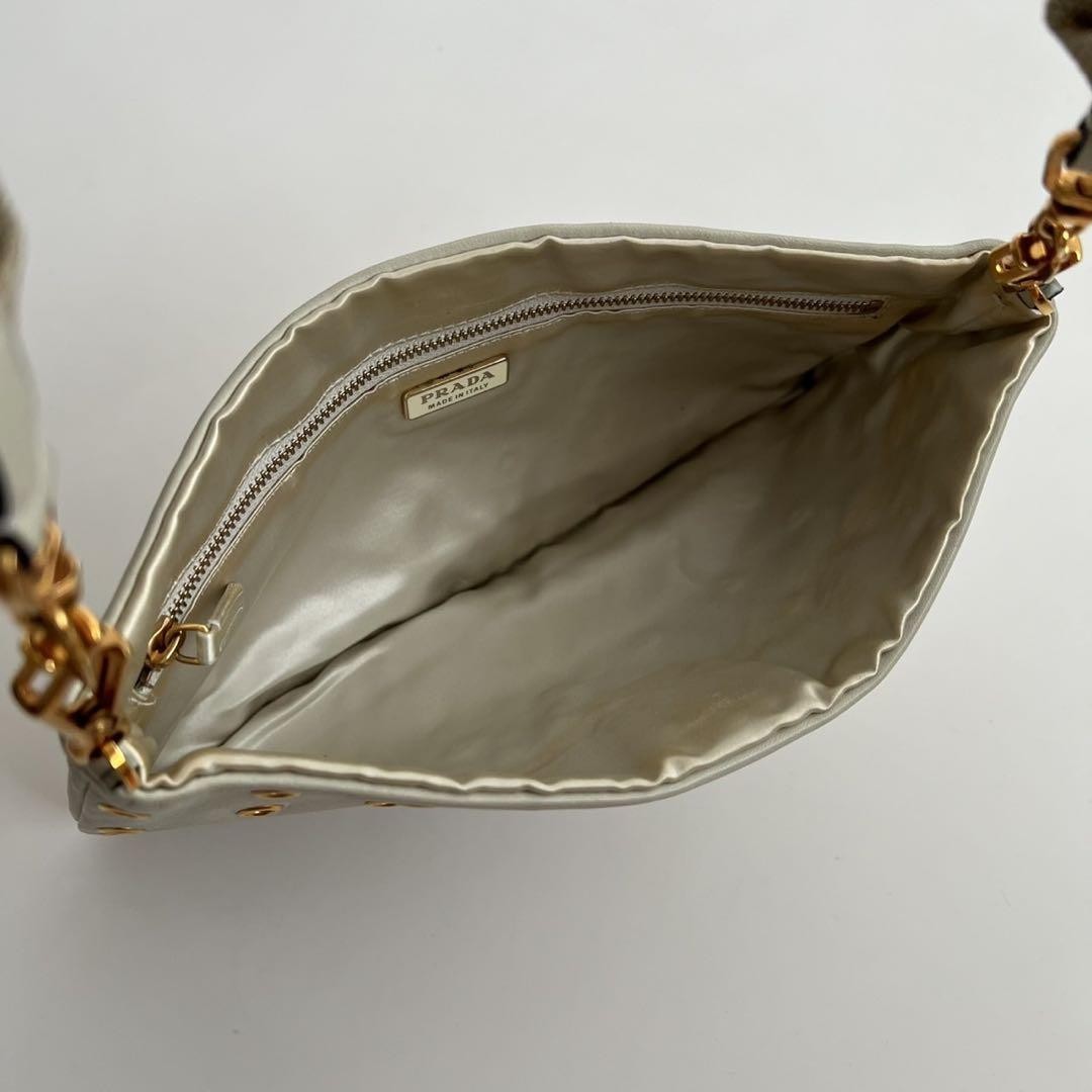 PRADA Shoulder Bag Purse Leather Beige Gold Authentic