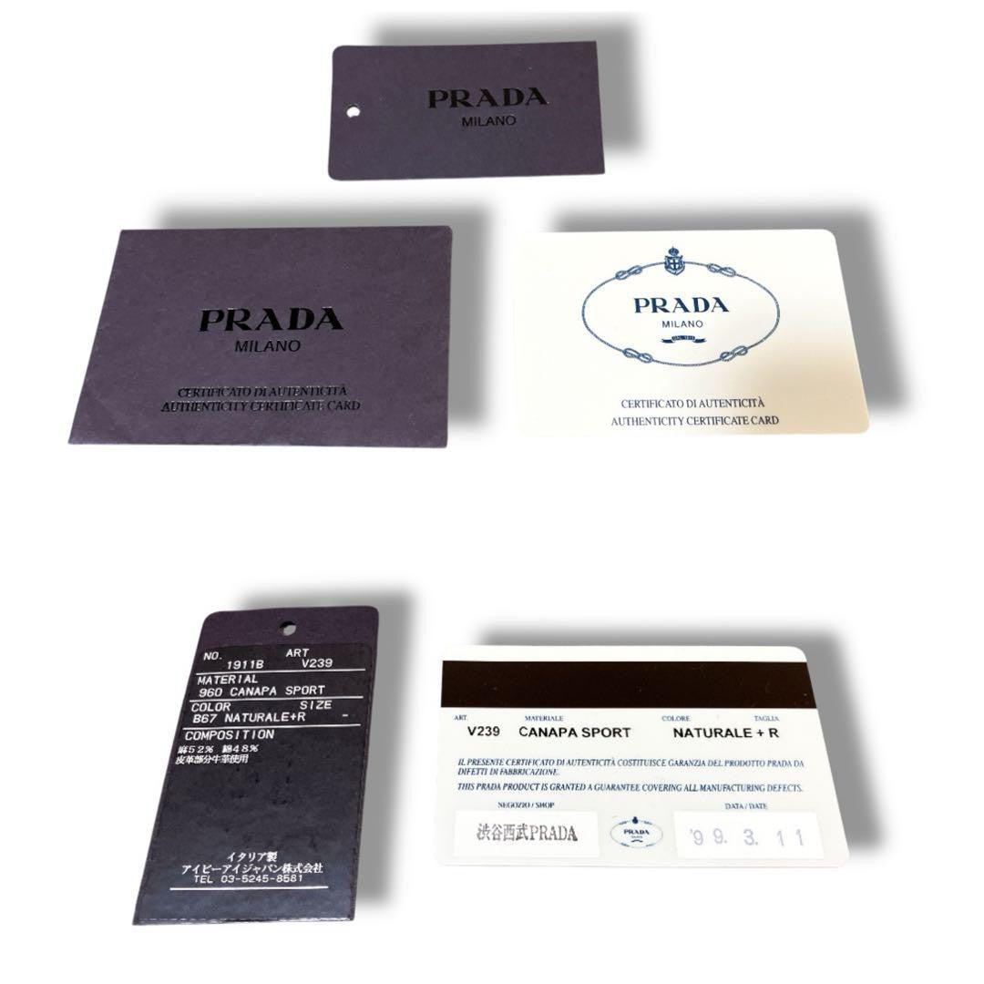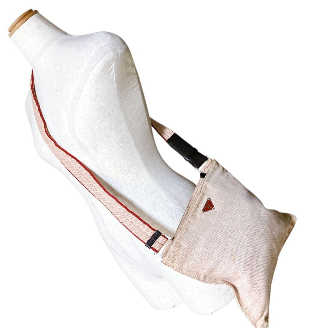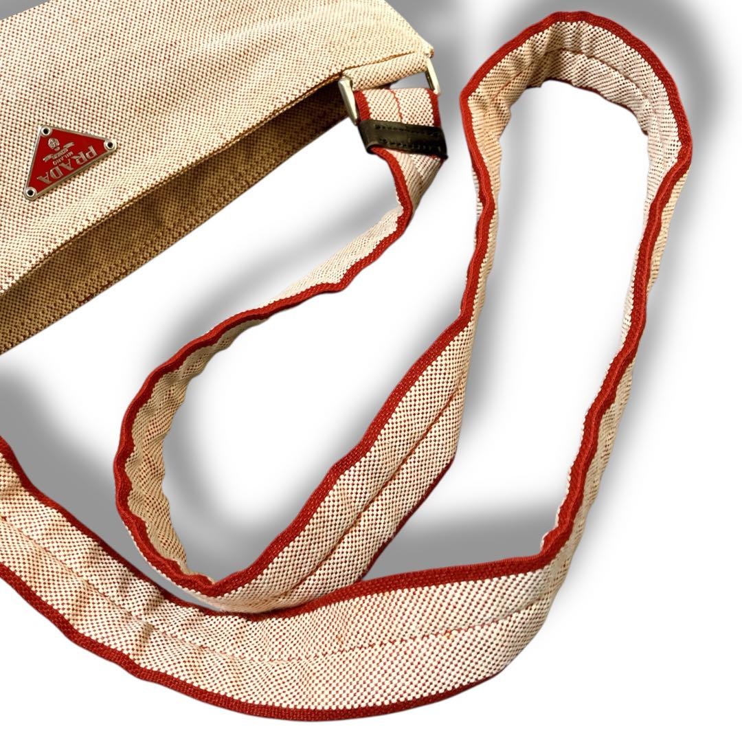 PRADA Shoulder Bag Purse Logo Canvas Beige Authentic