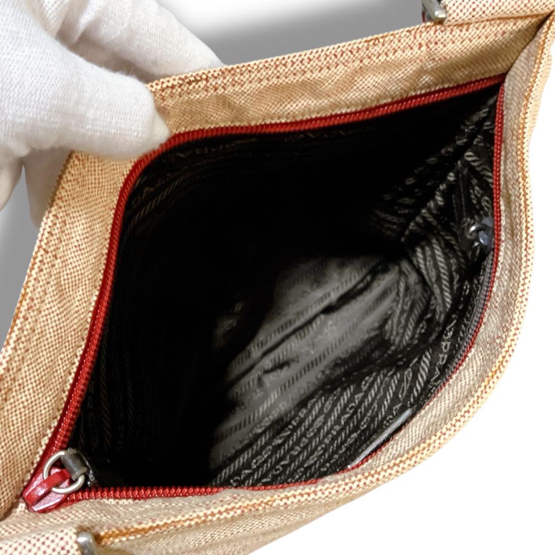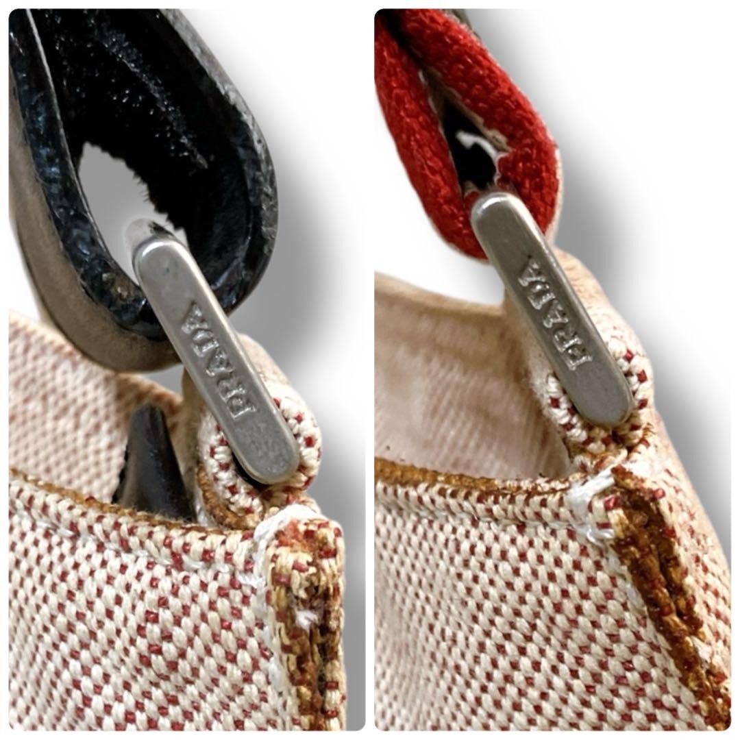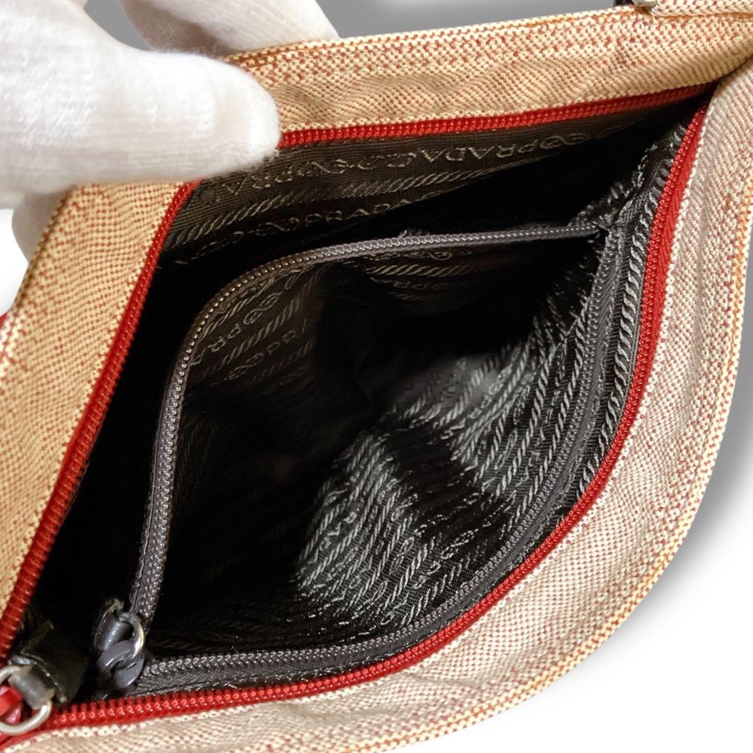 PRADA Shoulder Bag Purse Logo Canvas Beige Authentic