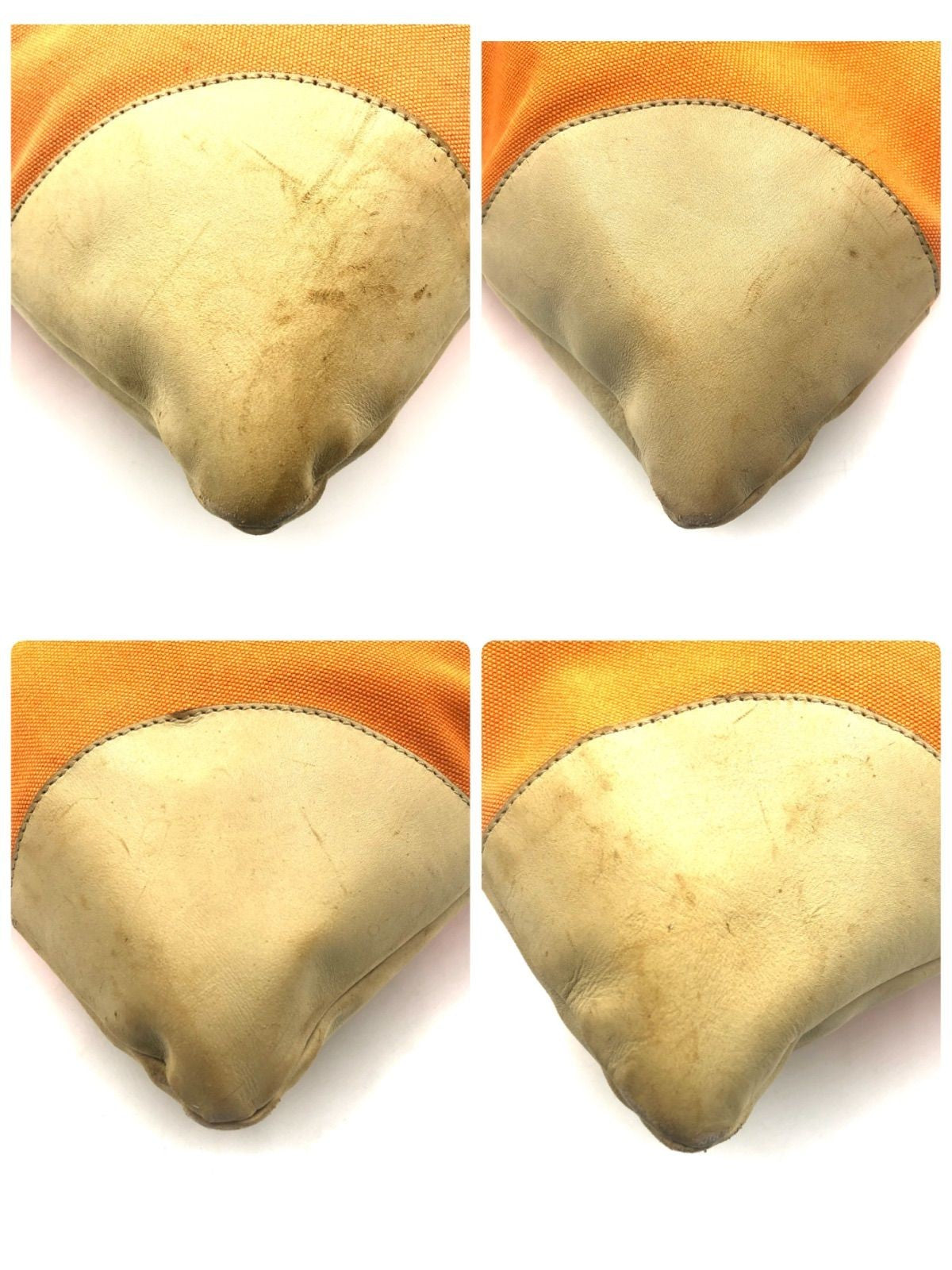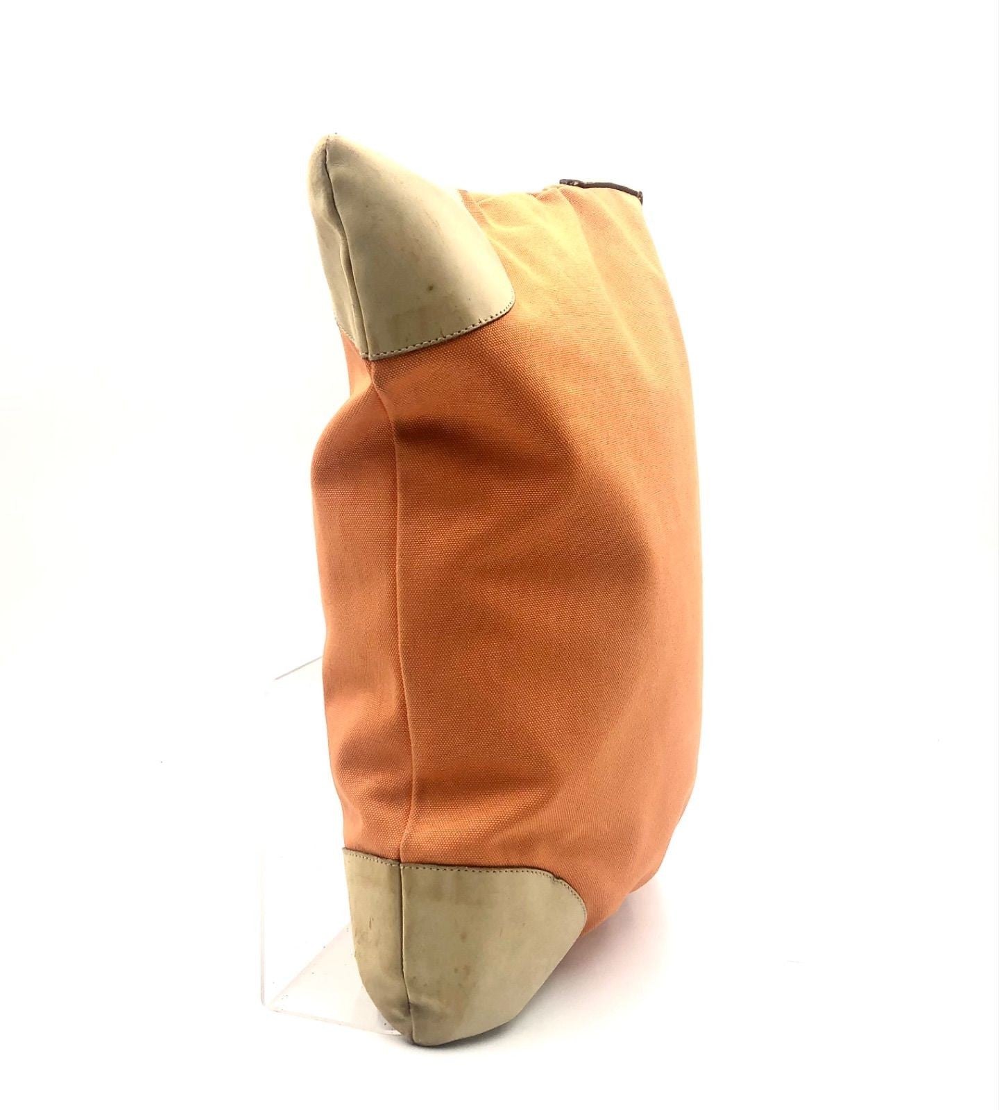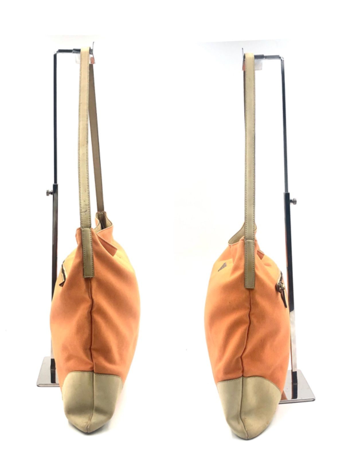 PRADA Shoulder Bag Purse Logo Canvas Leather Orange Beige Authentic