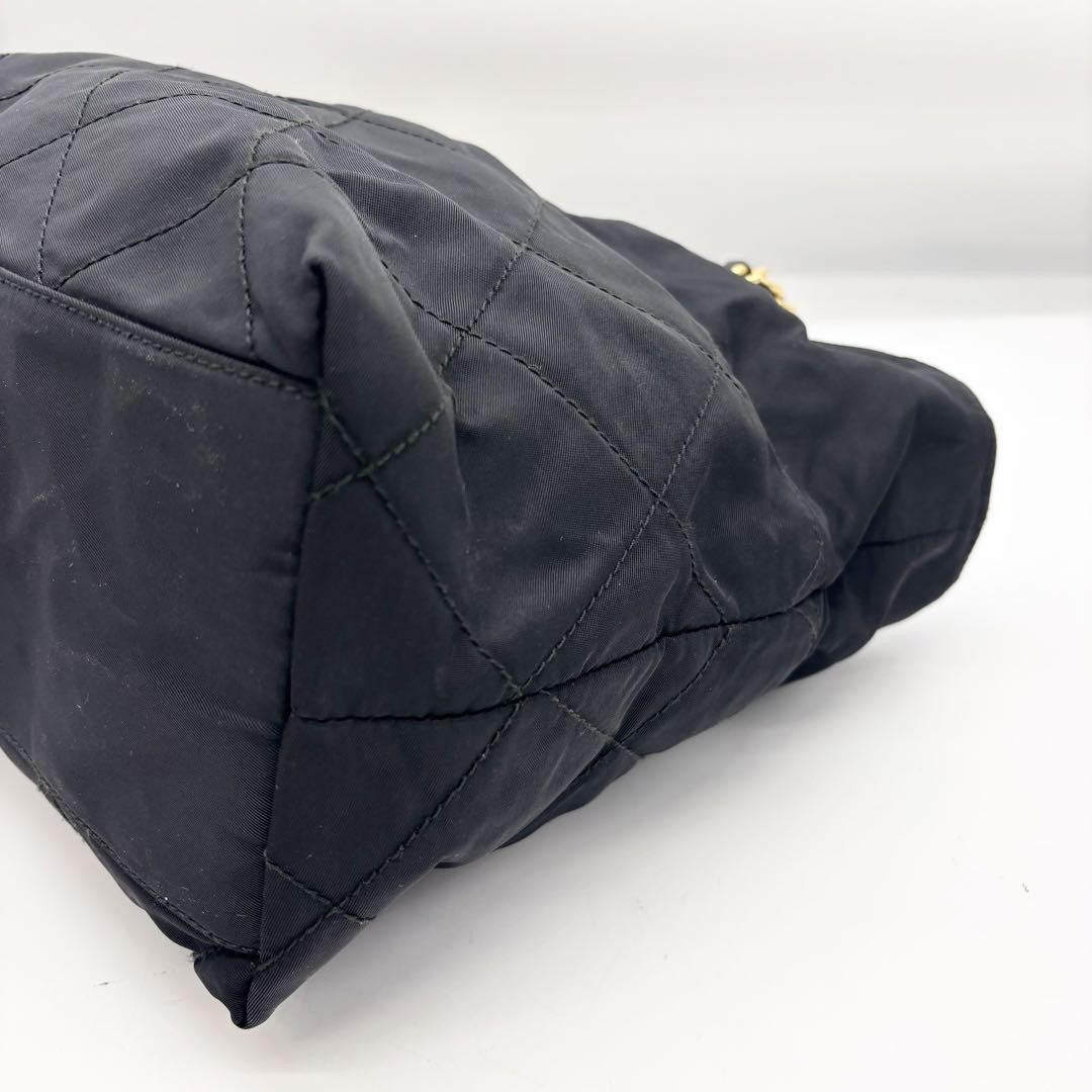 PRADA Shoulder Bag Purse Logo Chain Nylon Black Authentic