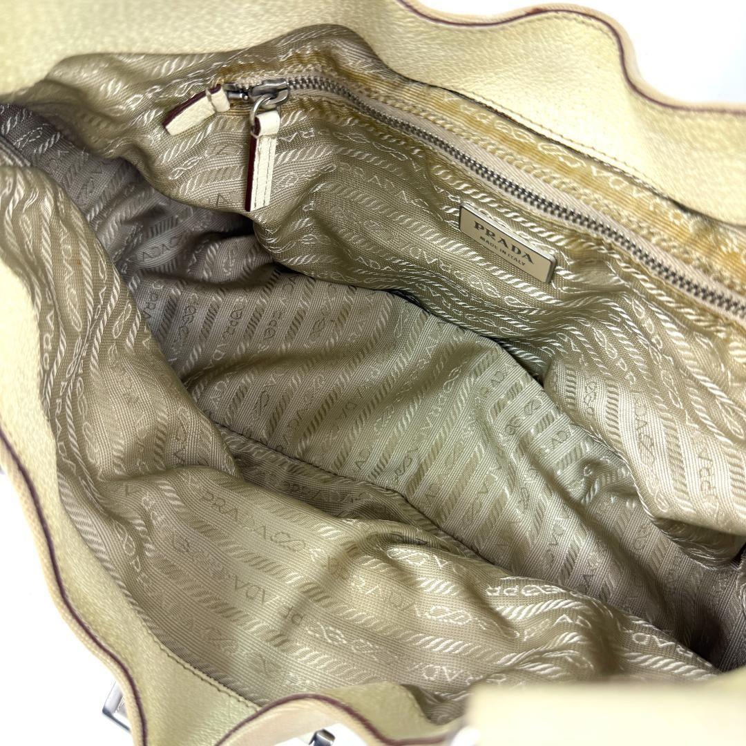 PRADA Shoulder Bag Purse Logo Leather Beige Authentic