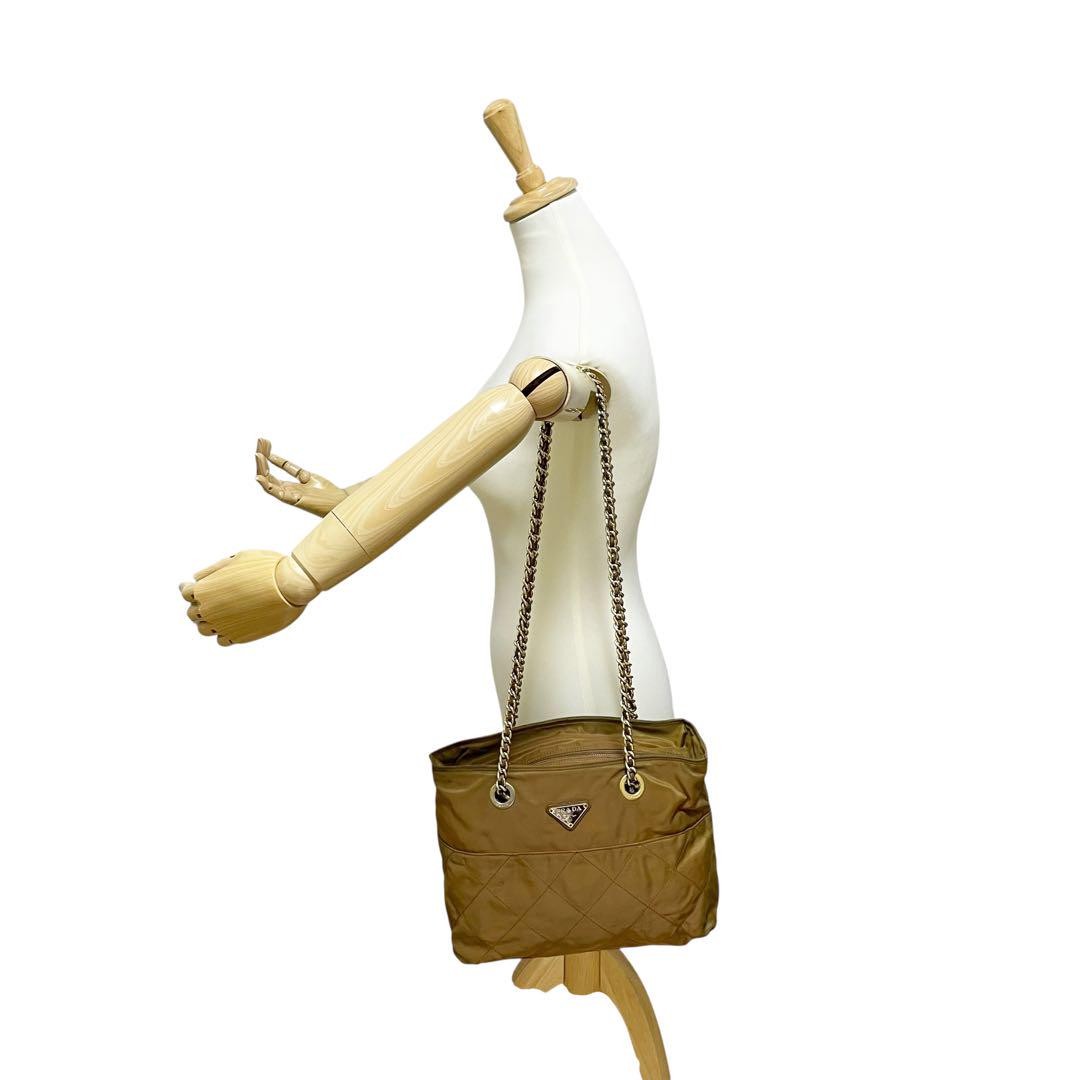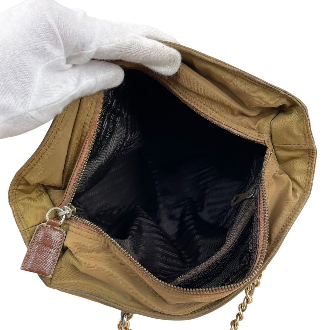 PRADA Shoulder Bag Purse Logo Nylon Khaki Authentic