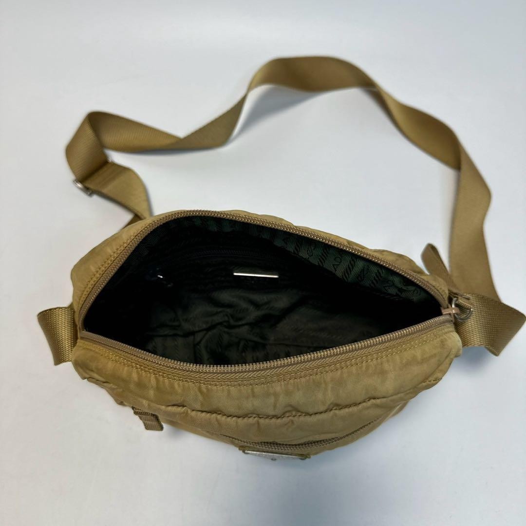 PRADA Shoulder Bag Purse Logo Nylon Leather Beige Authentic