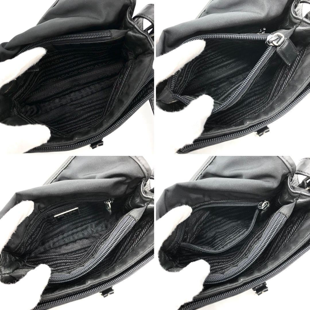 PRADA Shoulder Bag Purse Logo Nylon Leather Black Authentic