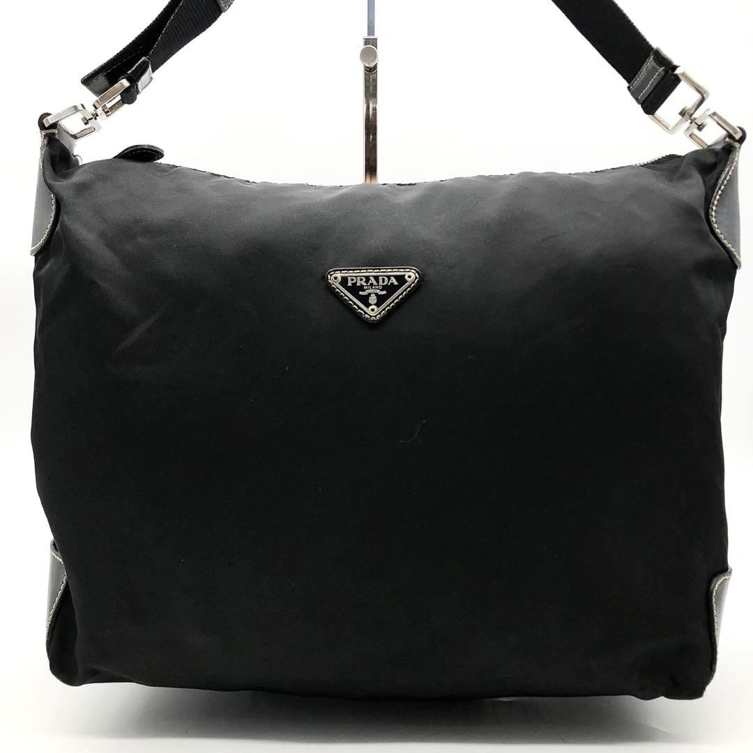 PRADA Shoulder Bag Purse Logo Nylon Leather Black Authentic