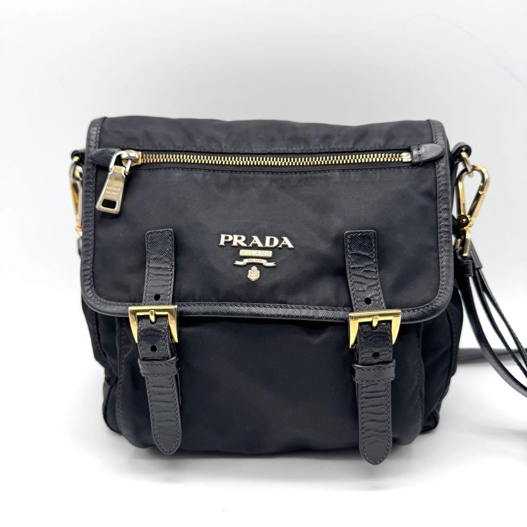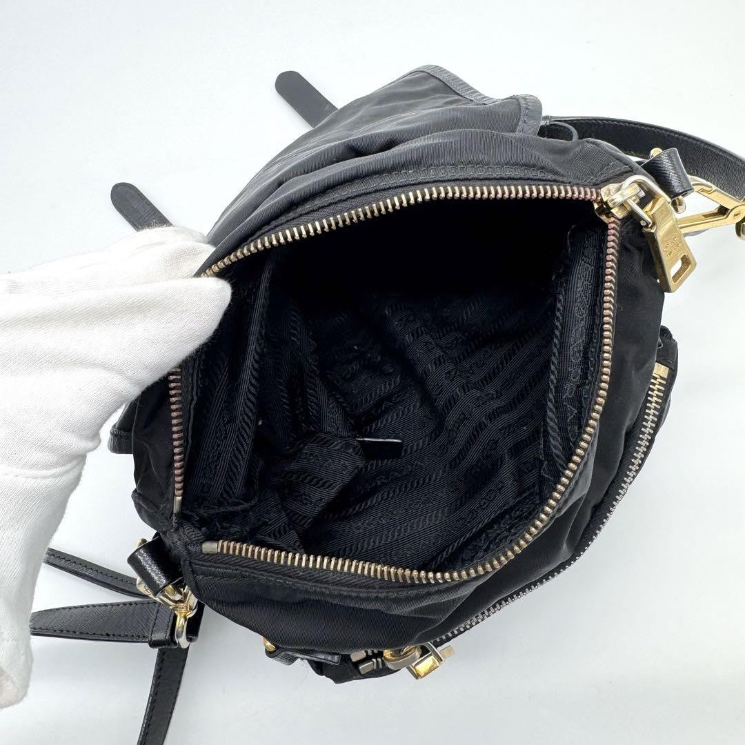 PRADA Shoulder Bag Purse Nylon Leather Black Authentic