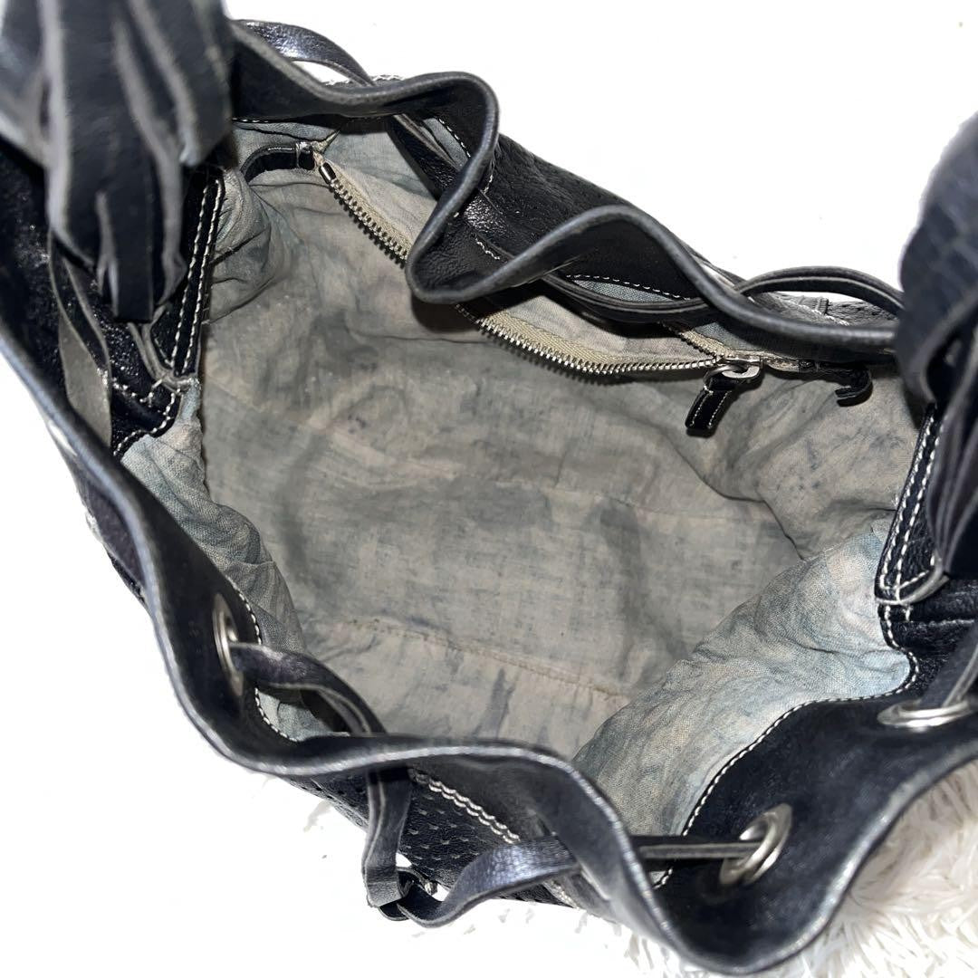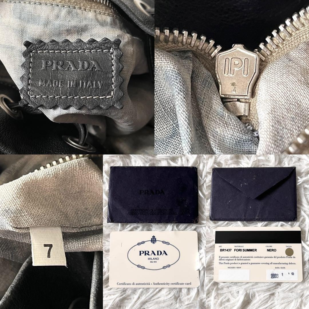 PRADA Shoulder Bag Purse Perforated Leather Black Authentic