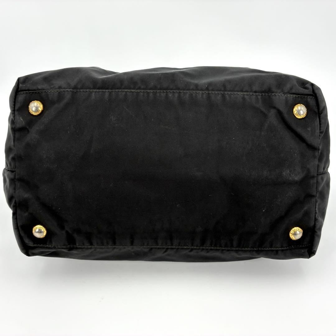 PRADA Tote bag Purse handbag ribbon logo hardware nylon black gold Women's Auth