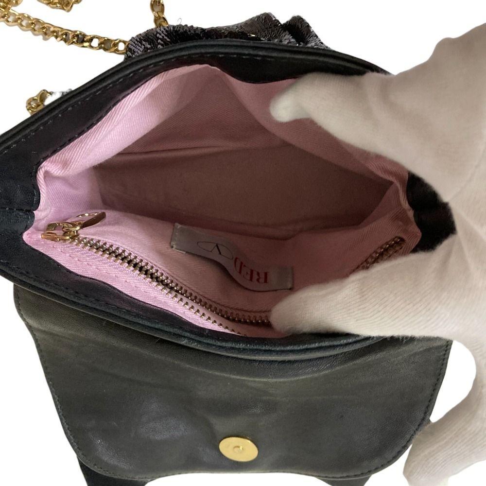 Red Valentino Shoulder Bag Purse Ribbon Chain Black Authentic